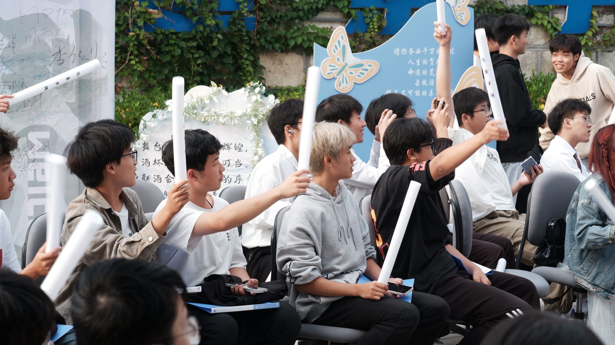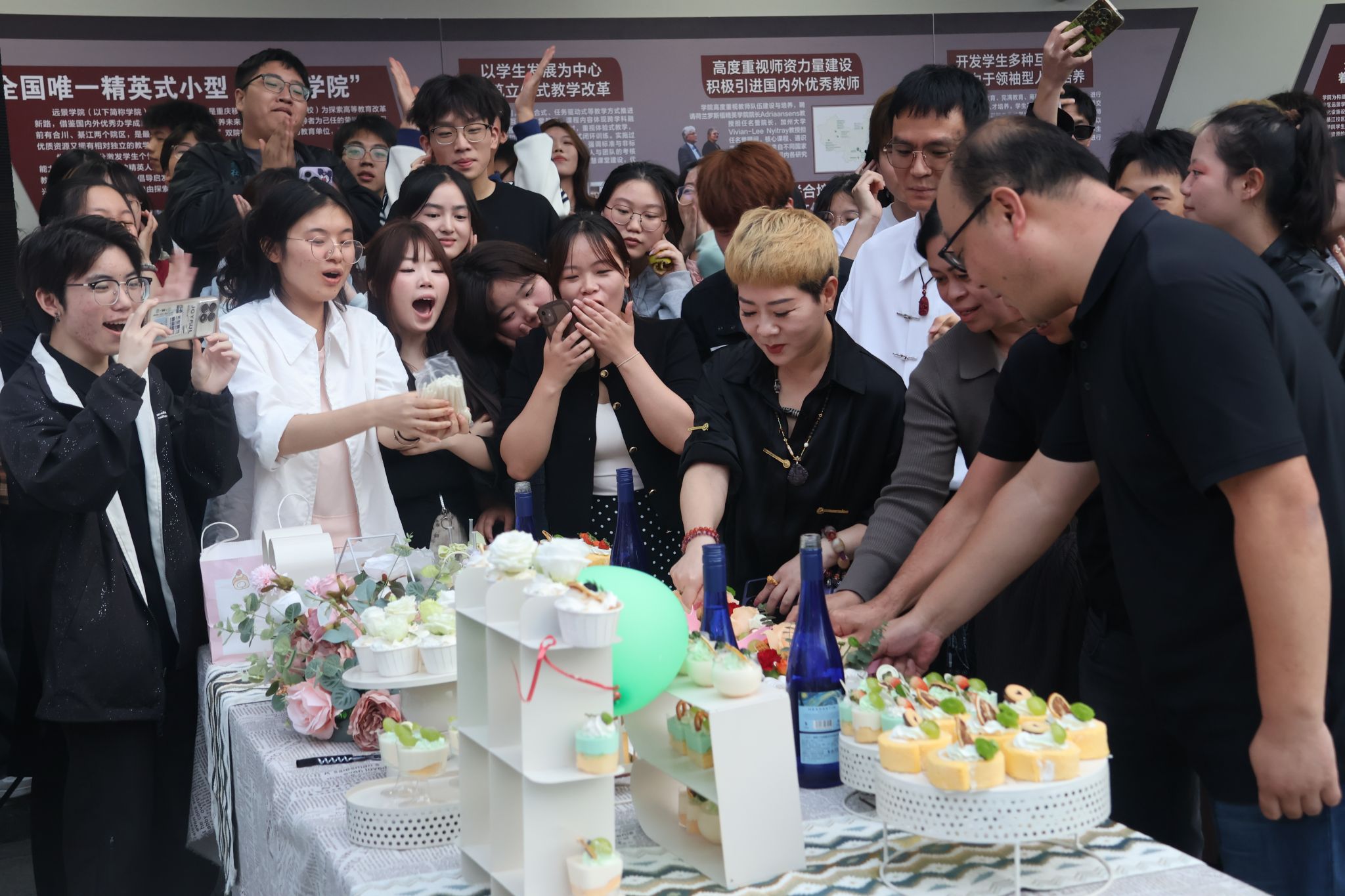伴随蛋糕的登场亮相,晚会再次来到新高潮,师生共品这份甜蜜,同今夜的美好一起封存在那金黄色的记忆之中,永不褪色。这众多的思绪与情感此刻汇聚在那小小的蛋糕上,融化在口齿间,似清香萦绕在每个人的心头。