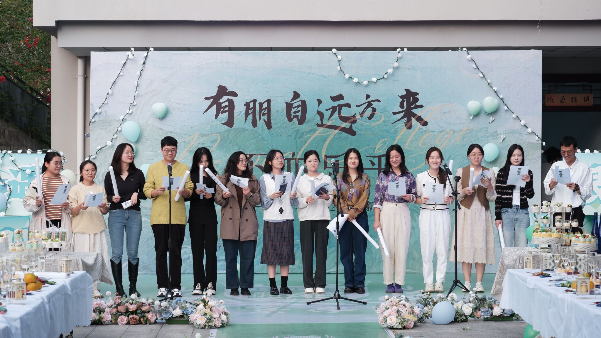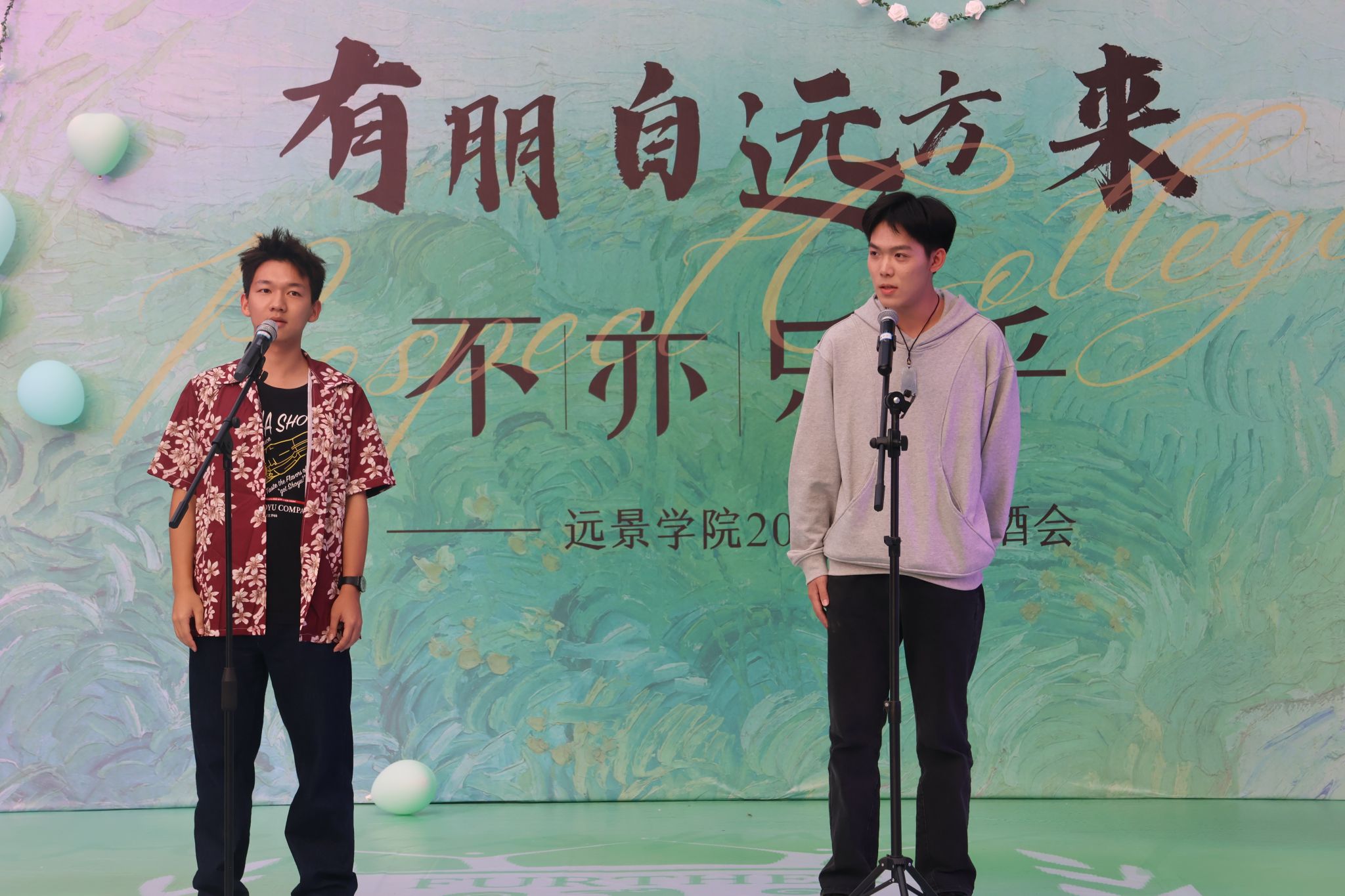 瑞雨收,画枫潜,十月的金秋迎来了远景学院2024级的荣誉生,翻开了大学生活的新篇章。10月25日綦江校区远景学院在智者楼中庭圆满举办远景学院2024迎新酒会,作为学校通识教育教学特色单位,学院努力创新育人模式和路径,致力于培养具有未来竞争力的全面发展的人才,十余年来,莘莘学子们在这里努力拼搏,成就更好的自己。每年的迎新酒会,不仅是同学们突破隔阂、相识相知的重要机会,也是大家自信展现自己互异才华、美美与共的重要活动,源自于创造美好未来的坚定,从此大家拥有了共同的名字——“远景人”。