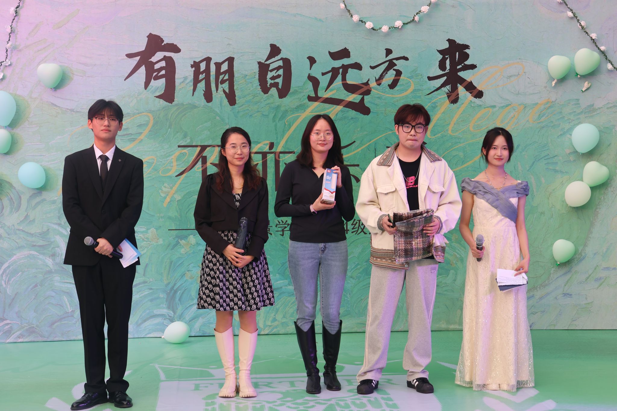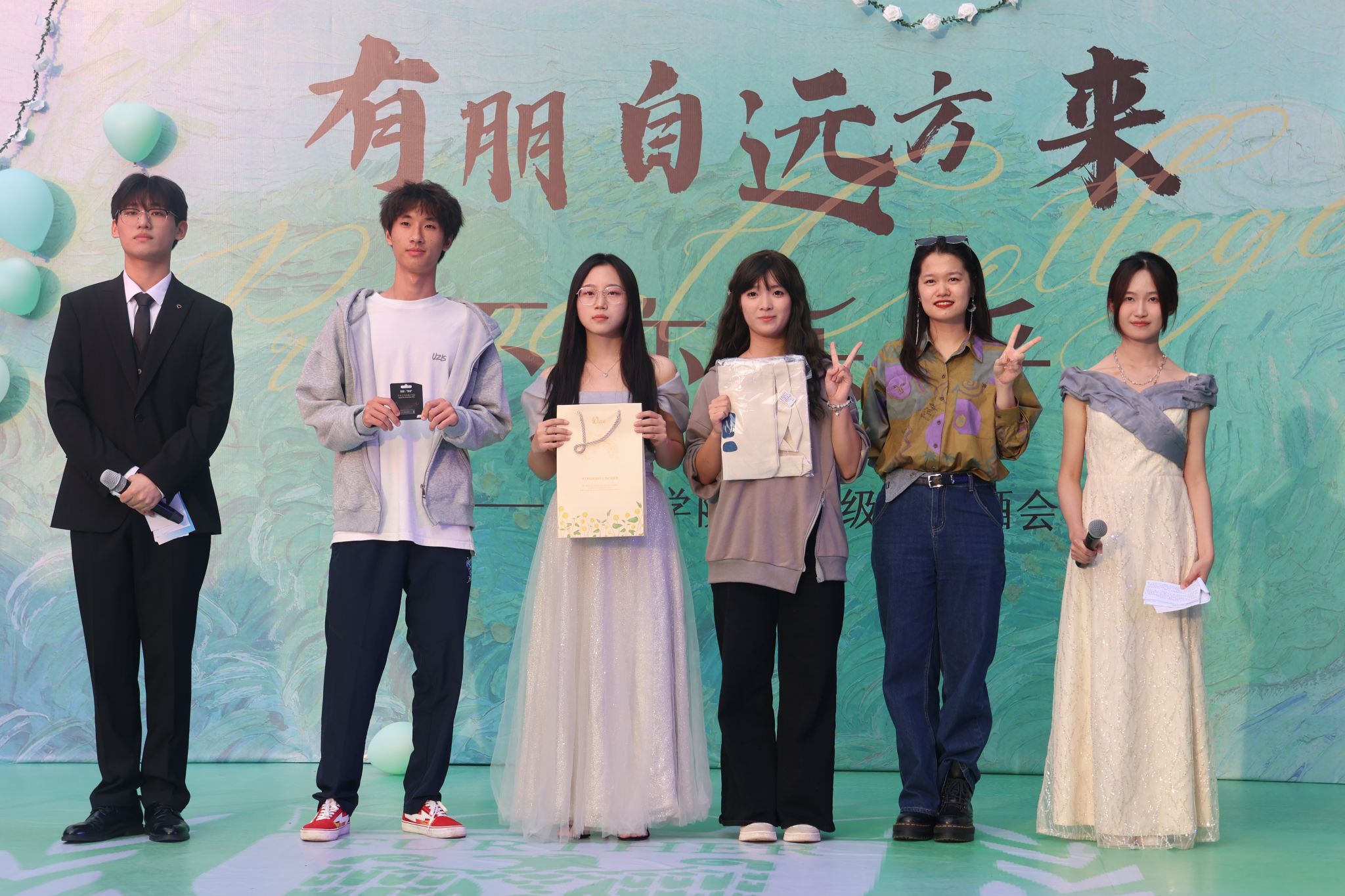 在节目演出过程中,穿插了激动人心的抽奖环节,同学们各自手捧抽奖券,期盼着那份欣喜的到来。但所谓人生长有两般愁,不是每一位学子都可以成为幸运儿。而那些“幸运儿”被主持人邀请到舞台之上获得远景独一份的酒会奖励,怀抱奖品的他们脸上无不洋溢出喜悦之情。