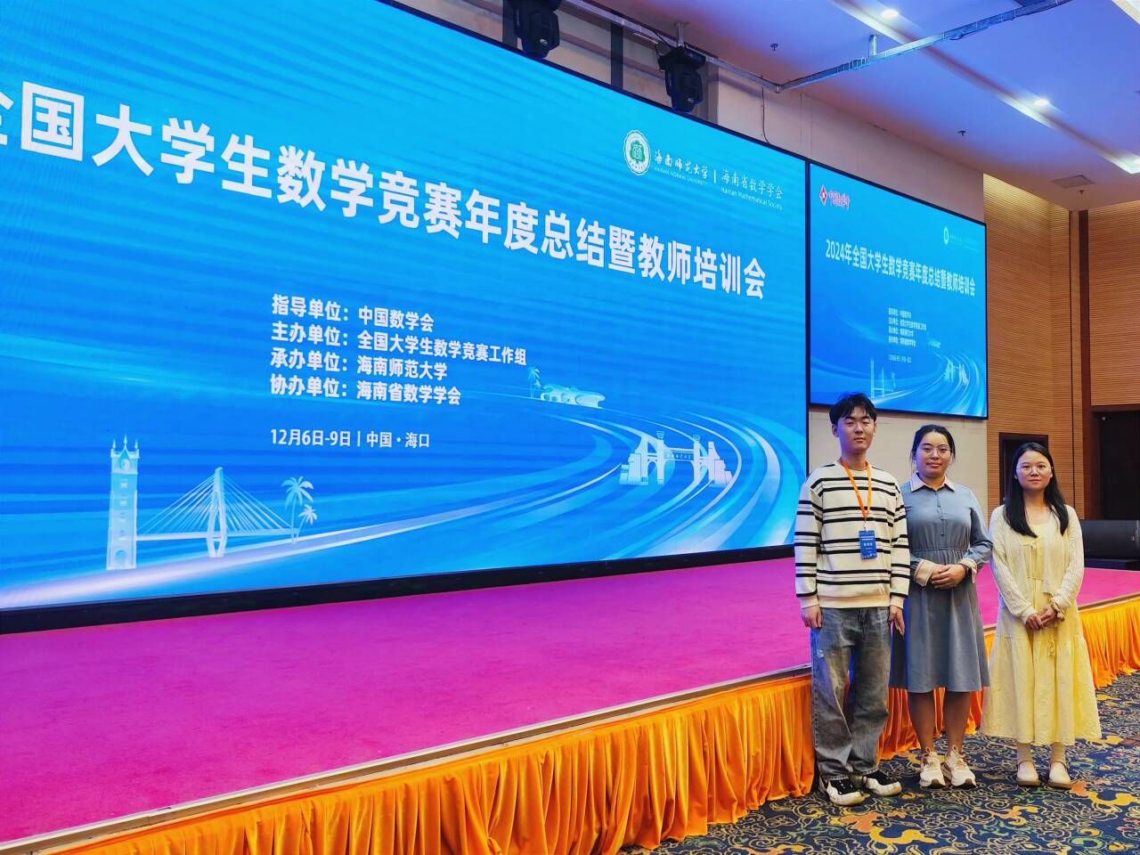 为进一步提升数学教学的整体质量和数学竞赛的竞技水平,2024年12月6日至9日,重庆移通学院远景学院数学教师许燚珂、曹沙沙、安鸿宇参加了由全国大学生数学竞赛工作组组织,于海南海口举办的“2024年全国大学生数学竞赛年度总结暨教师培训会”。在会议期间,三位老师认真聆听了多位专家学者的精彩演讲,并积极与来自全国各地的数学教师展开深入交流,共同探讨和分享了数学教学与竞赛的最新前沿信息。