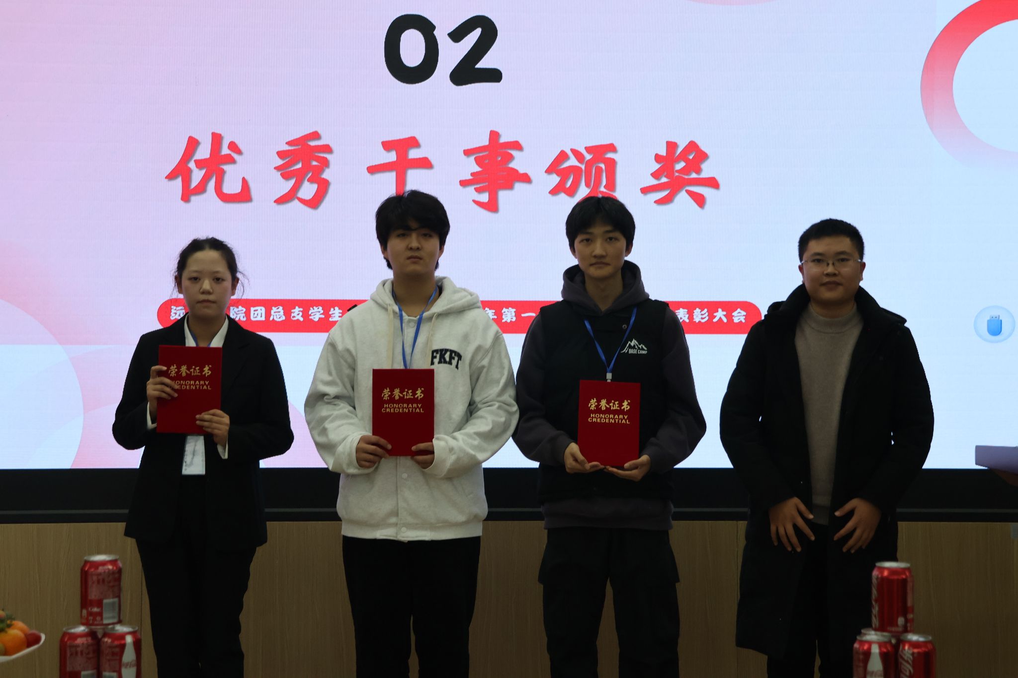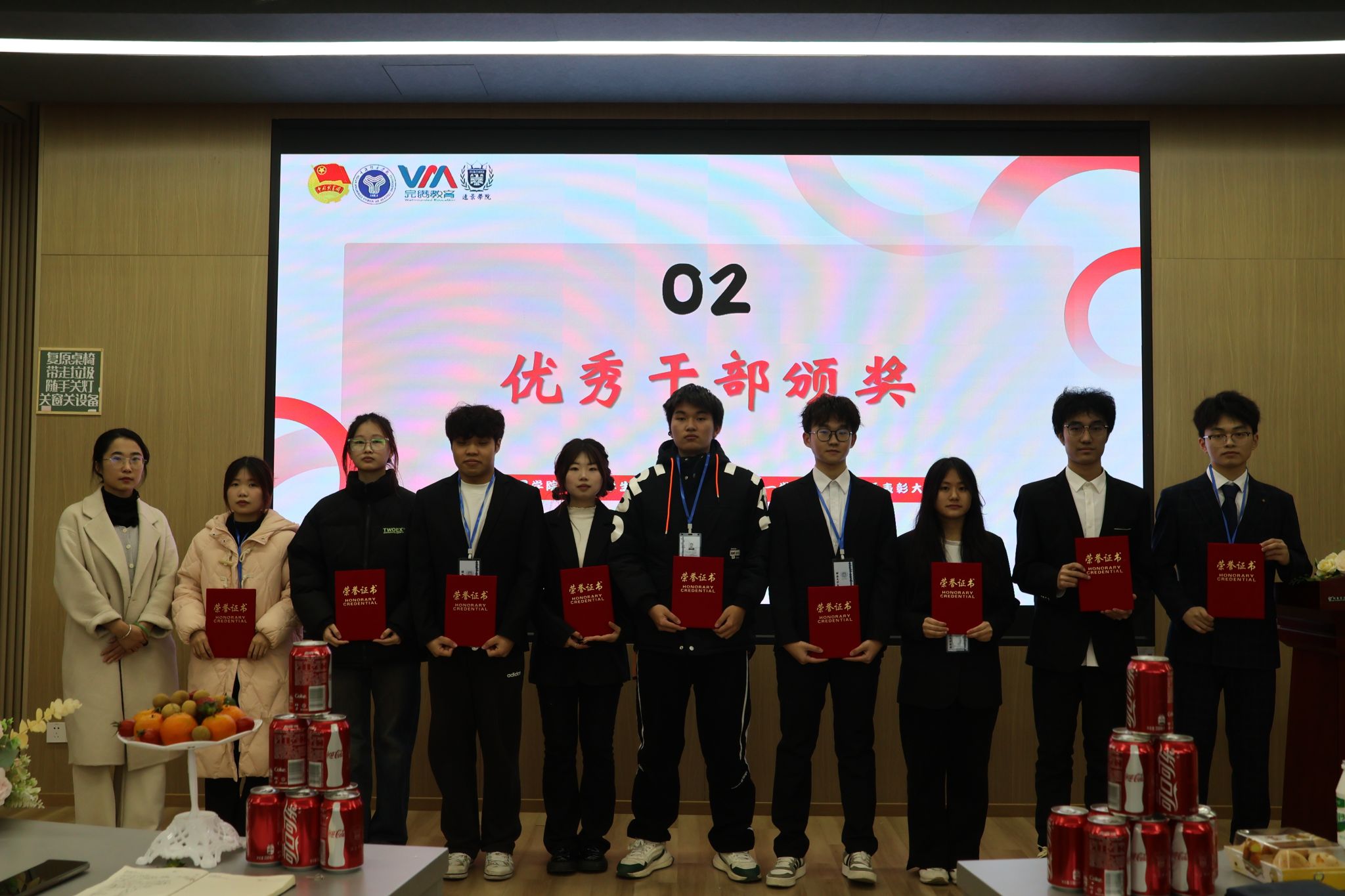 接着就是表彰环节。主持人庄重宣读获得优秀干部、优秀干事名单,分别由游荟平老师和李璐老师上台颁发荣誉证书。受表彰学生在过去的学业、工作以及社会实践等各个方面,均展现出了卓越的才能与坚韧的毅力,他们的优异表现无疑成为了台下众多同学奋力前行的灯塔,同时也激励他们在以后工作中再接再厉。现场气氛热烈,掌声如潮水般响起,经久不息,这掌声既是对被表彰学生的肯定与赞扬,也是对全体学生未来的期许与鼓励,激励着大家在追求卓越的道路上不断奋进,共同书写属于自己的辉煌篇章。