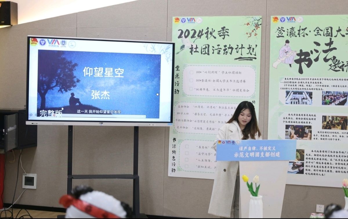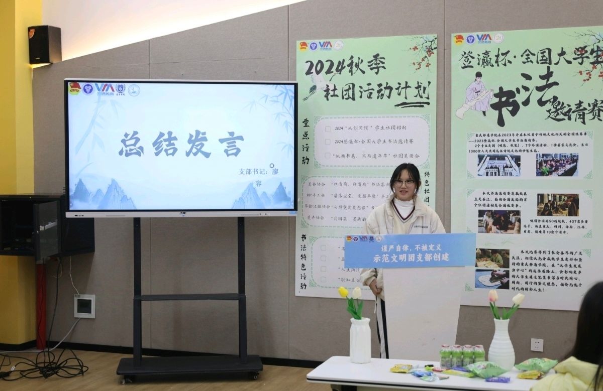 在活动的尾声,全体同学共同唱响了张杰的《仰望星空》。悠扬的歌声中,饱含着他们对未来的美好期许和对自律生活的向往,歌声在培训室中回荡,也在同学们的心中种下了希望的种子。随后,四支部书记廖容对活动进行了全面而深刻的总结发言,她回顾了活动中的精彩瞬间和同学们的成长点滴,鼓励大家将自律作为一种习惯,持之以恒地坚持下去。辅导员杨红老师则从个人发展的角度出发,鼓励大家在大学生活中树立自己的职业目标与规划,合理利用好大学时光,才能在专业道路上发光发亮。
