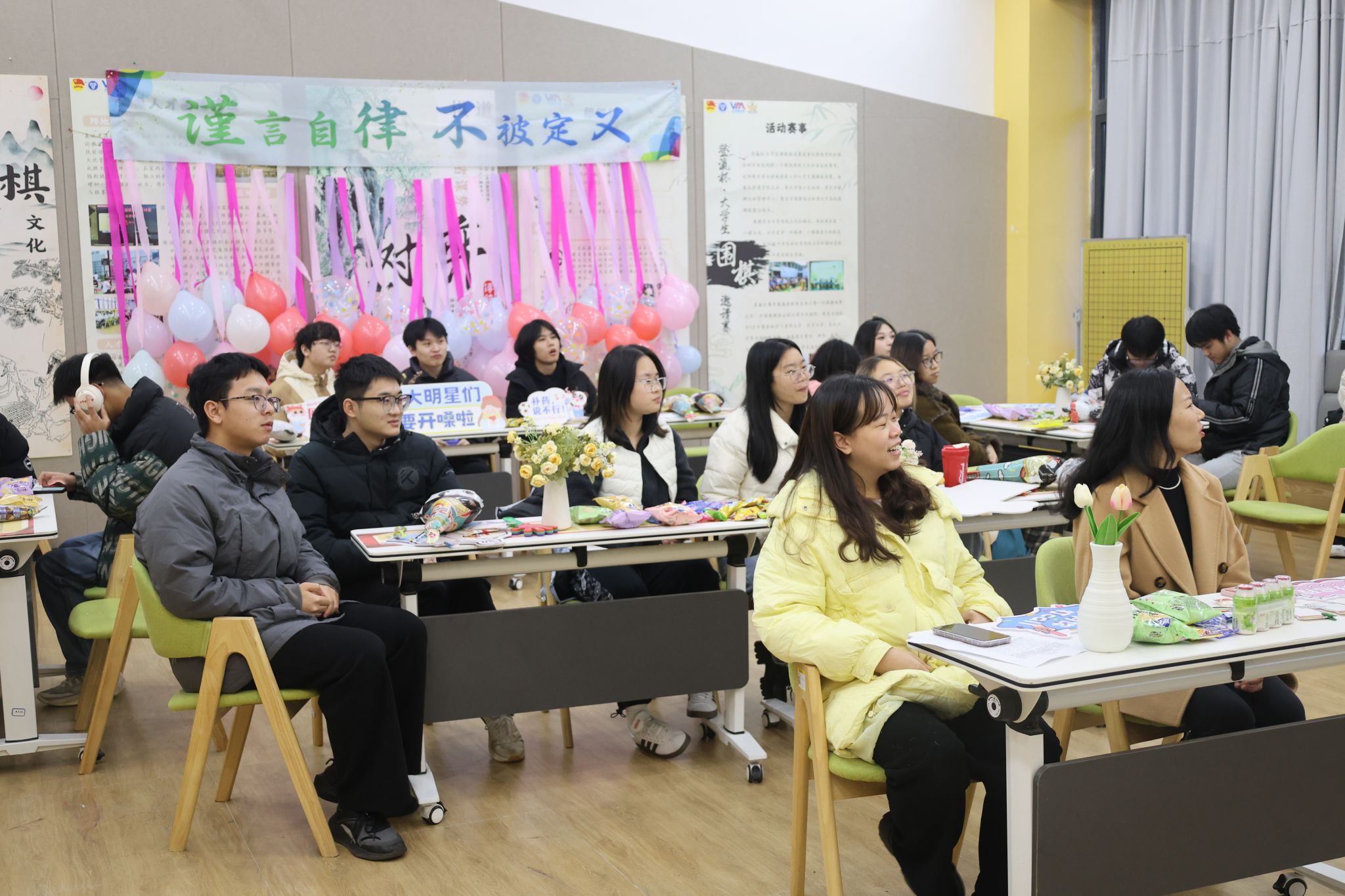 活动在主持人热情洋溢的开场中拉开帷幕。“自律之谜语猜猜猜”作为首个环节,瞬间点燃了现场气氛。脑筋急转弯题目巧妙地融入了自律元素,同学们积极开动脑筋,思维的火花在激烈的抢答中不断碰撞,欢笑声回荡在整个研讨室。