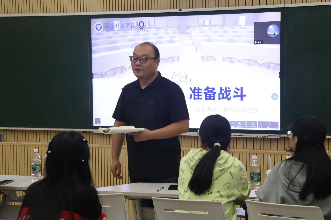 学院学工副院长李军和教学副院长强杨分别发表讲话。他们对2025届毕业生寄予了殷切期望,树立凌云之志,追求远景梦想。领导表示学院将通过细致摸排,深入了解个性化需求,为同学们的就业提供全方位的支持和精准化的指导,希望毕业生们设定高远目标的同时,深入思考三个关键问题:要做什么、能做什么、想做什么,进行自我的探索,适时调整和及时止损,做出符合自身实际情况的职业选择。追求梦想的过程中,会遇到各种挑战和困难,勇敢地面对现实,灵活调整自身职业规划,避免在不适合自身的道路上过多的浪费时间和精力。院长的嘱托让在场的毕业生感受到了学院的关怀和重视,有了学院的全力支持,同学们更加坚定了追求梦想的决心,更有勇气去面对挑战,去实现自己的职业目标。