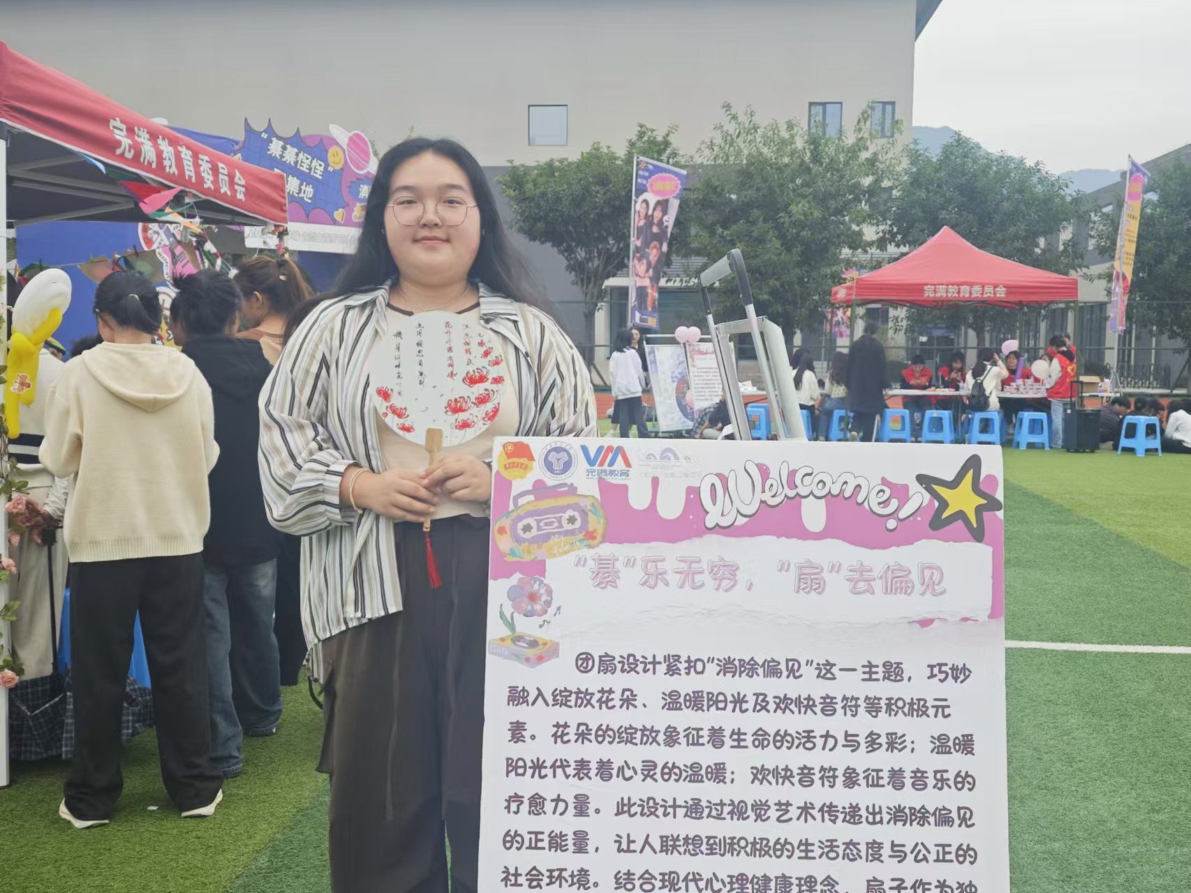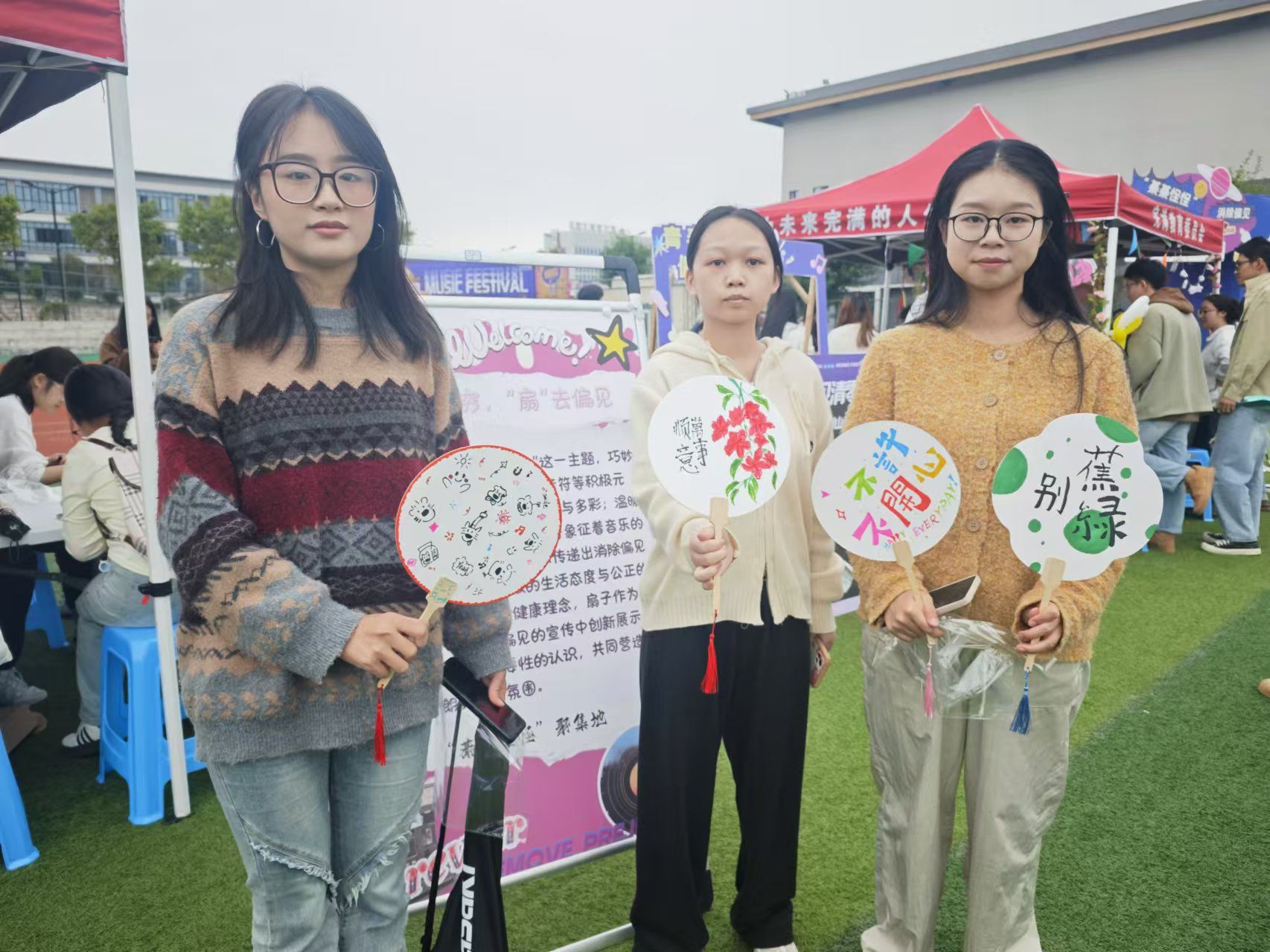 在生活的舞台上,偏见常常如影随形,它阻碍着人们真正去理解和接纳彼此。为更好地消除生活中的偏见,重庆移通学院远景学院于2024 年 10月19日至20日在校运动场上举办了“綦綦怪怪”聚集地ד綦”乐无穷,“扇”去偏见音乐节外围活动。此次活动以手工DIY扇子为主要内容,在扇子上勾勒出自己的所闻所感,不仅为正在举办的音乐节增添一抹趣味,丰富了全校师生的课余生活,同时也能减少各种偏见、歧视和成见在社会中的存在和传播。