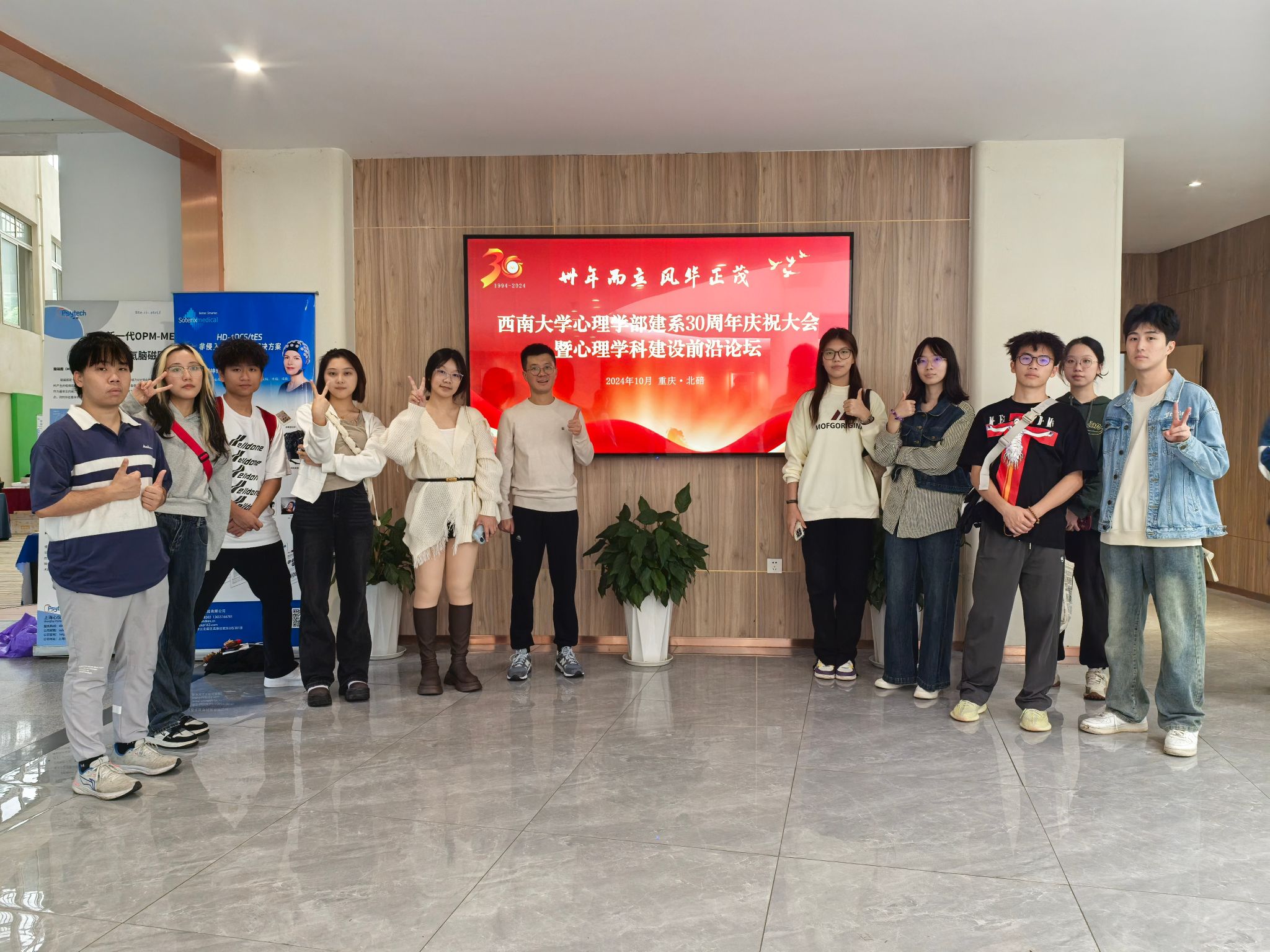 为提升学生对心理学知识的兴趣和认识,增强对心理学发展历史和成就的了解,促进与其他高校学生之间的交流与学习,在西南大学心理学部建系30周年庆祝大会暨心理学科建设前沿论坛之际,2024年10月19日《心理学与生活》课程研学小组走进西南大学开展研学活动,通过活动拓宽视野,加深对通识教育重要性的理解。