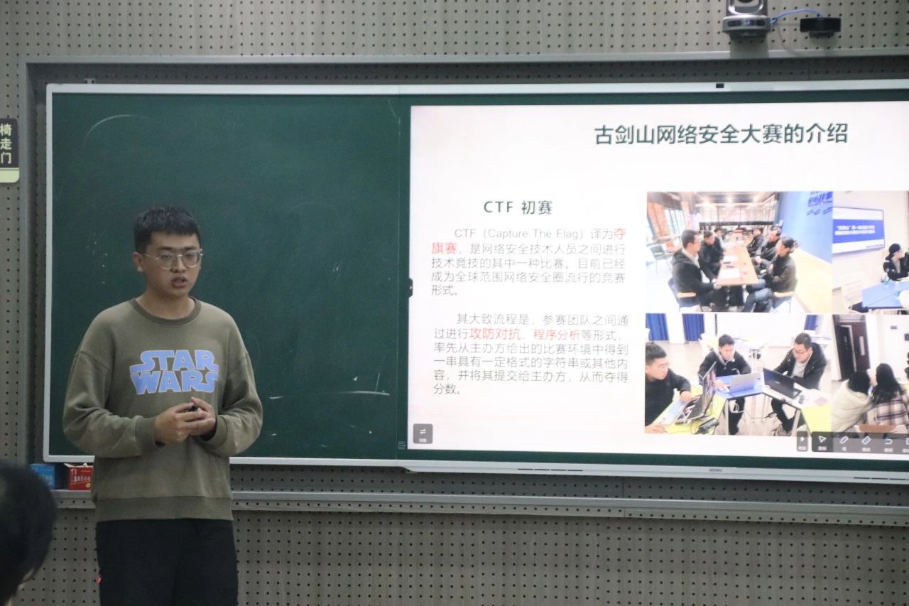 随后,许燚珂老师对重庆移通学院“古剑山”第二届全国大学生网络攻防大赛的相关信息进行了详细介绍,包括报名时间、比赛时间、参赛地点、竞赛方式、竞赛内容以及奖项评定等。她鼓励同学们积极参与报名,通过比赛提升自己的专业能力和综合素质。
