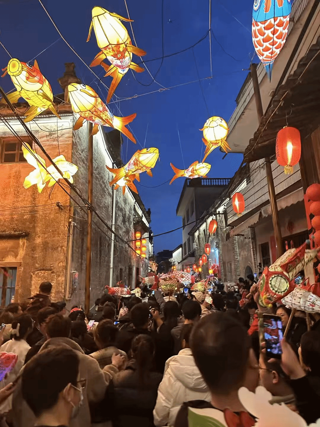 还有的照片聚焦于热闹非凡的民俗活动现场。舞龙舞狮的队伍在人群中穿梭自如,他们身姿矫健,动作灵动,精彩的表演赢得观众阵阵喝彩。色彩斑斓的花灯巡游同样引人注目,栩栩如生的鱼形花灯,仿佛在夜空中自在遨游;憨态可掬的兔子花灯,带着对新一年吉祥如意的美好期许。这些民俗活动不仅是传统文化的生动演绎,更承载着人们对美好生活的向往与追求。