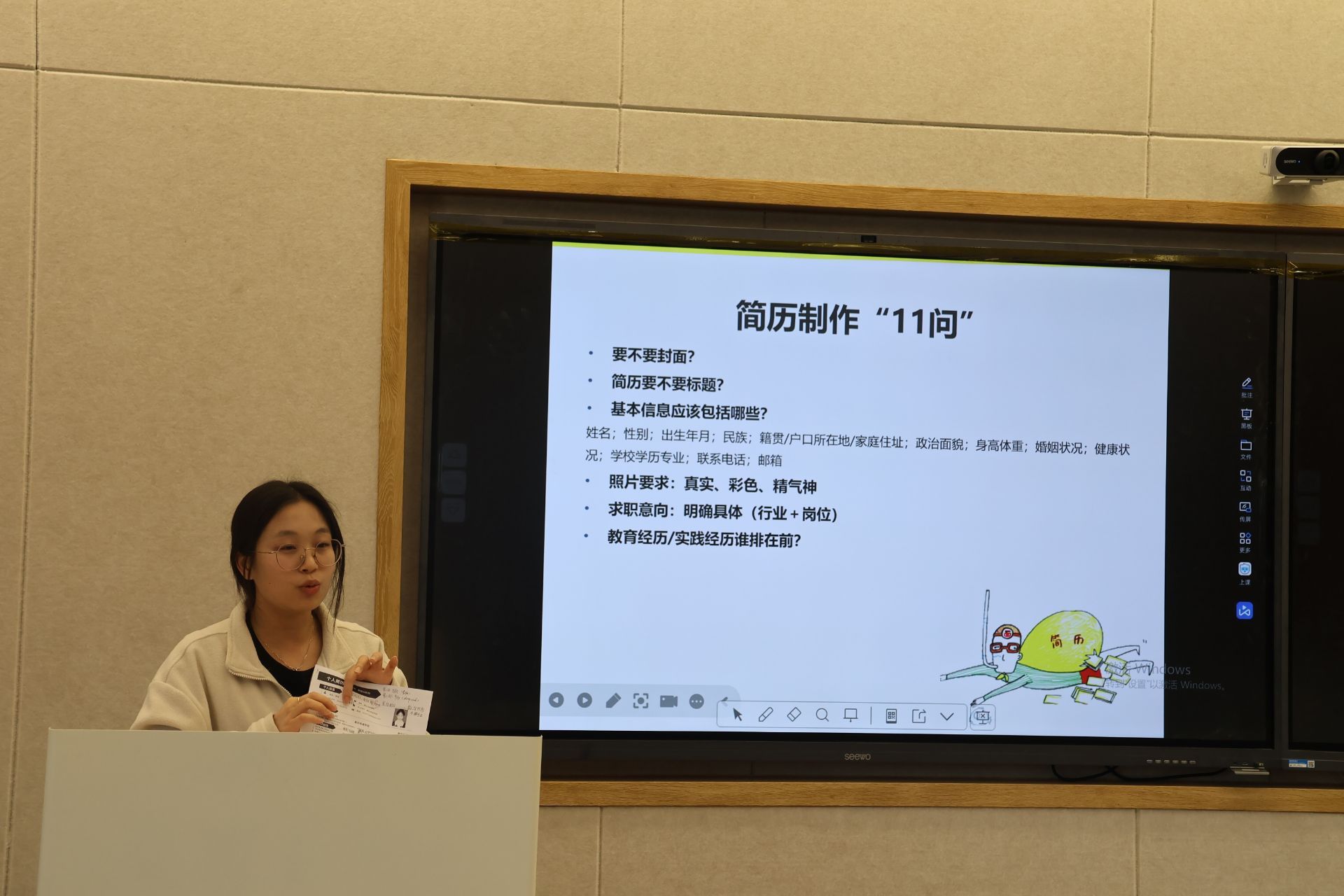 活动尾声,指导老师万虹岑从资金、资源、人员三个维度深度解析简历优化策略。强调资金维度需关注企业现金流与行业特性,优先选择财务稳健或处于上升期的企业,降低职业波动风险;资源维度建议学生通过企业案例,提炼目标岗位的核心需求,将个人经历与行业标杆对标,用数据量化成果,而非泛泛描述职责;人员维度则需精准匹配岗位隐性要求,如技术岗突出项目经验细节,职能岗强化沟通案例,同时避免冗余信息,确保简历“每一句话都为岗位量身定制”。强调到“企业更看重岗位适配性,而非盲目追求‘优秀标签’。”