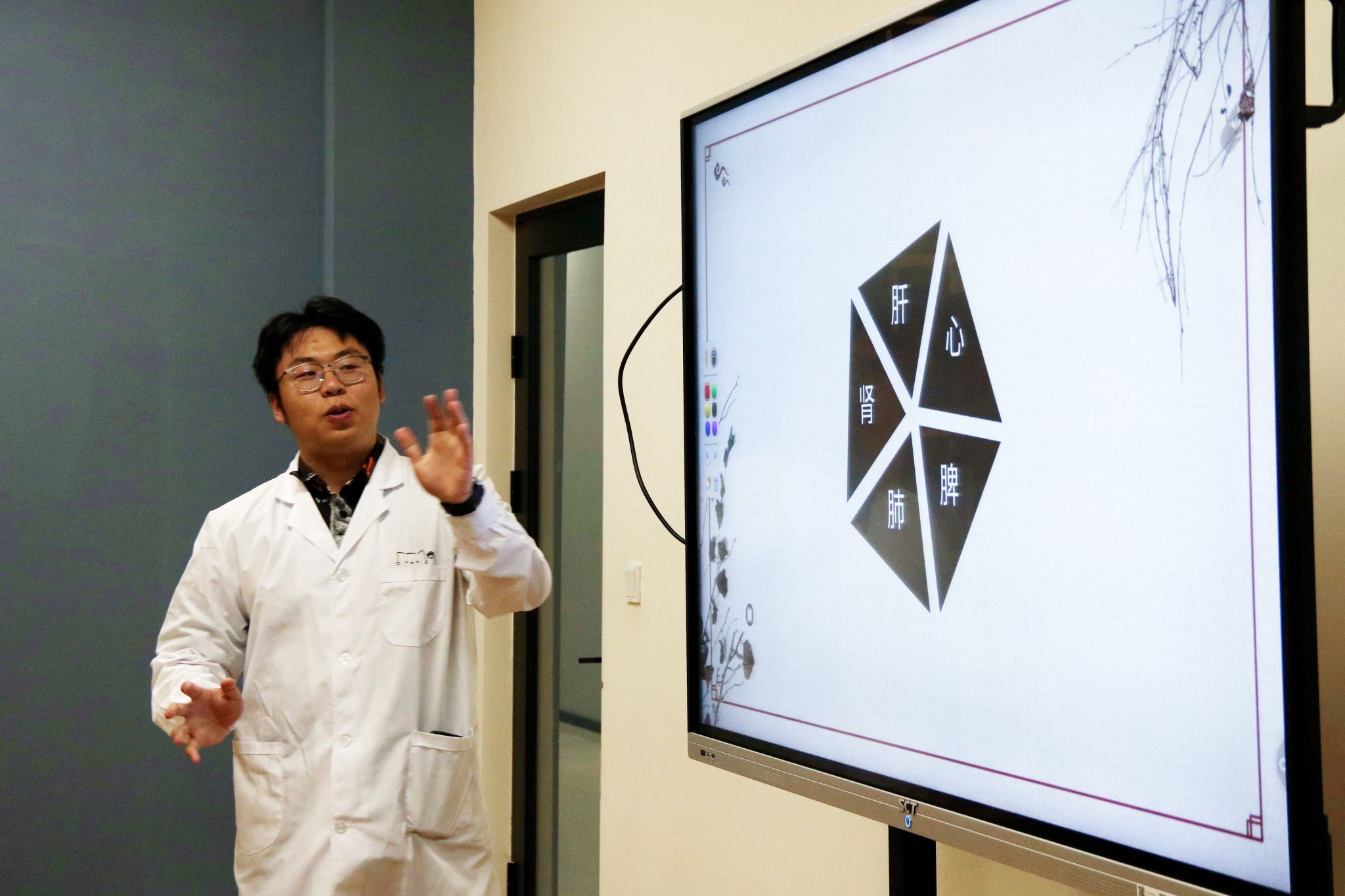 活动伊始,张帅以《黄帝内经》中“上医治未病,中医治欲病,下医治已病”的古训切入,生动阐释了中医“防重于治”的核心理念。他结合现代生活场景,以“脾胃为气血之源”“天人相应”等理论,深入浅出地剖析了五脏六腑的养护之道。针对师生常见的颈椎酸痛、熬夜失眠等问题,张帅以“按揉三阴交”“滚法施于肩颈”等实用技巧为例,现场演示穴位定位与手法,让理论知识“活”起来。在饮食养生环节,张帅以“五谷为养,五果为助,五畜为益,五菜为充”的十六字箴言为引,结合当代学生熬夜、饮食不规律的现状,提出“辰时温粥养胃”“亥时静卧安神”的个性化建议。他特别强调:“中医美容减肥需从脾胃入手,盲目断碳水伤脾反致虚胖,常按三阴交、足三里,可助运化而自然瘦身。”现场演示耳后翳风穴按压技巧时,同学们争相观摩学习,课堂氛围热烈。