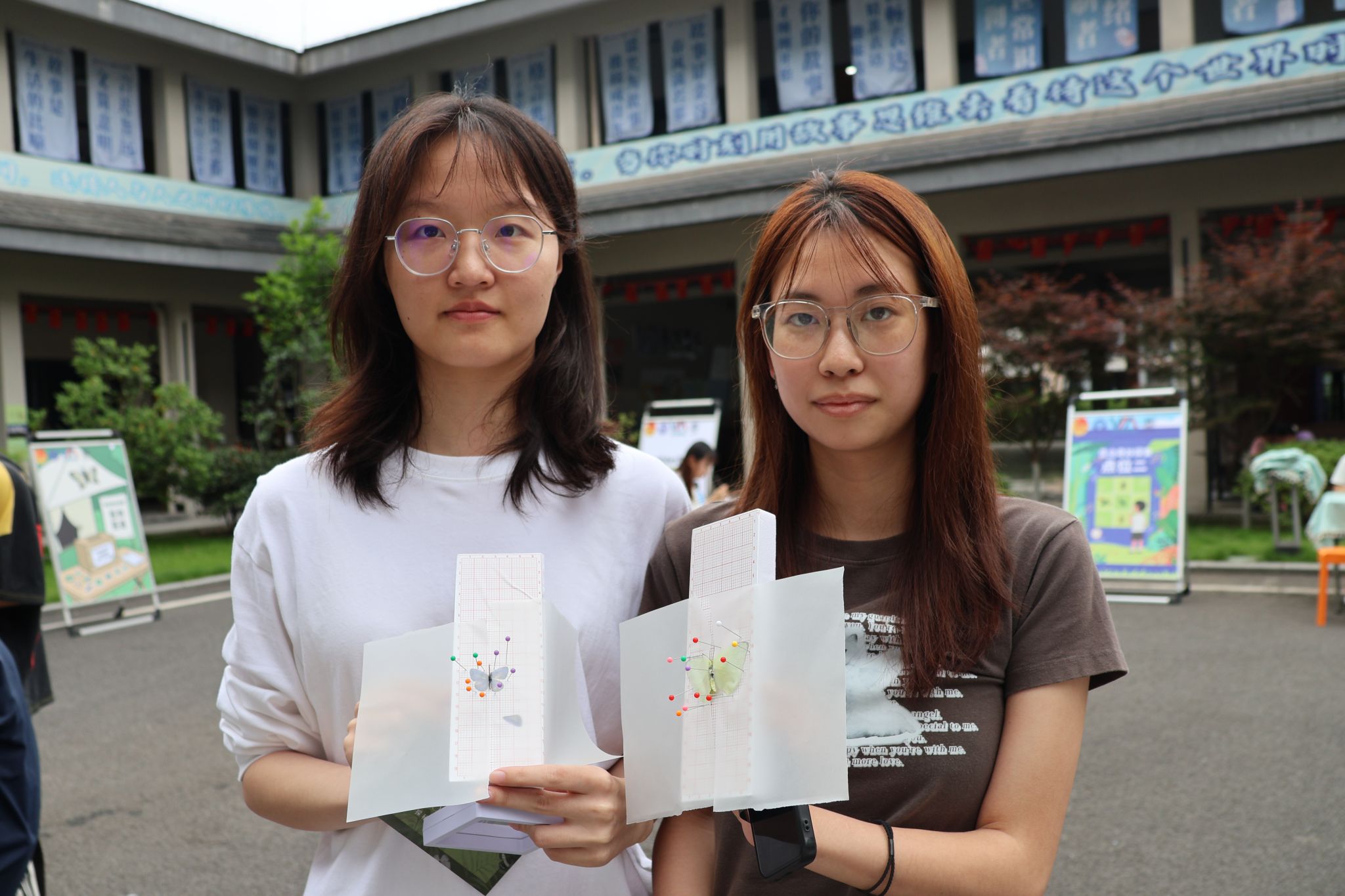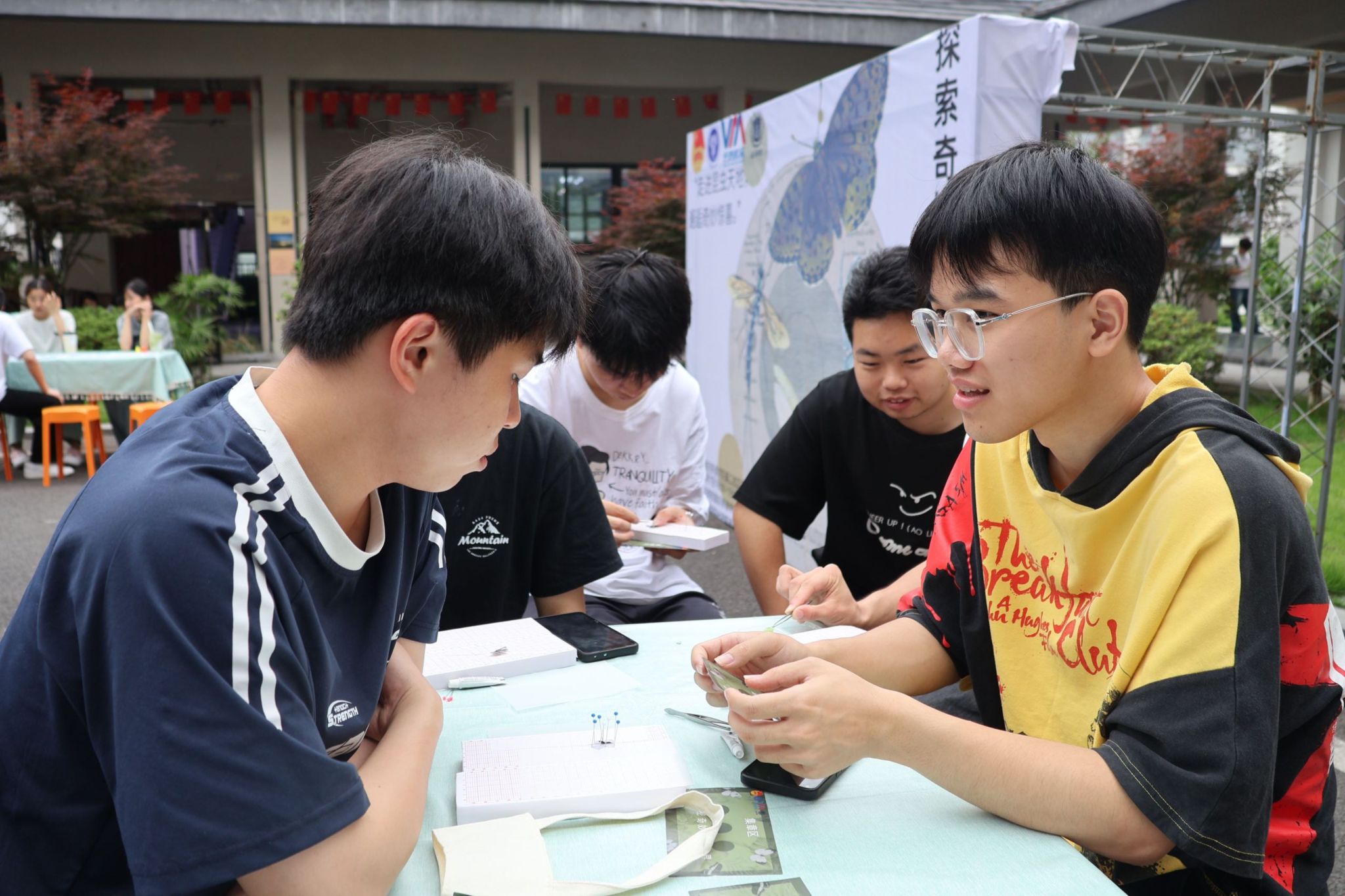 在九宫格展板旁,几名同学专心致志,在工作人员的倒计时响起后,迅速将昆虫各自归位,展现出超凡的记忆力。零散的蝗虫足拼图和瓢虫鞘翅拼图铺满长桌,工作人员将立体拼图分发给同学们,同学们按照自己记忆中的印象将模型拼接完整。活动的过程中,有的同学将昆虫的身体部位搞错,拼接出了与现实截然不同的“新物种”,但更多的同学都完美地将昆虫拼接完成。一只只昆虫的立体模型出现在同学们的手上,好几个同学都拿出手机,拍摄下了自己的作品。