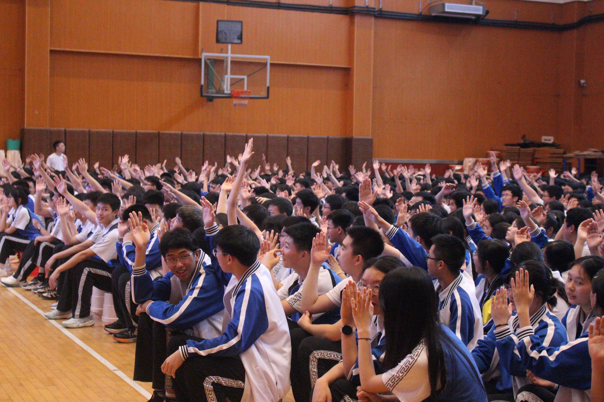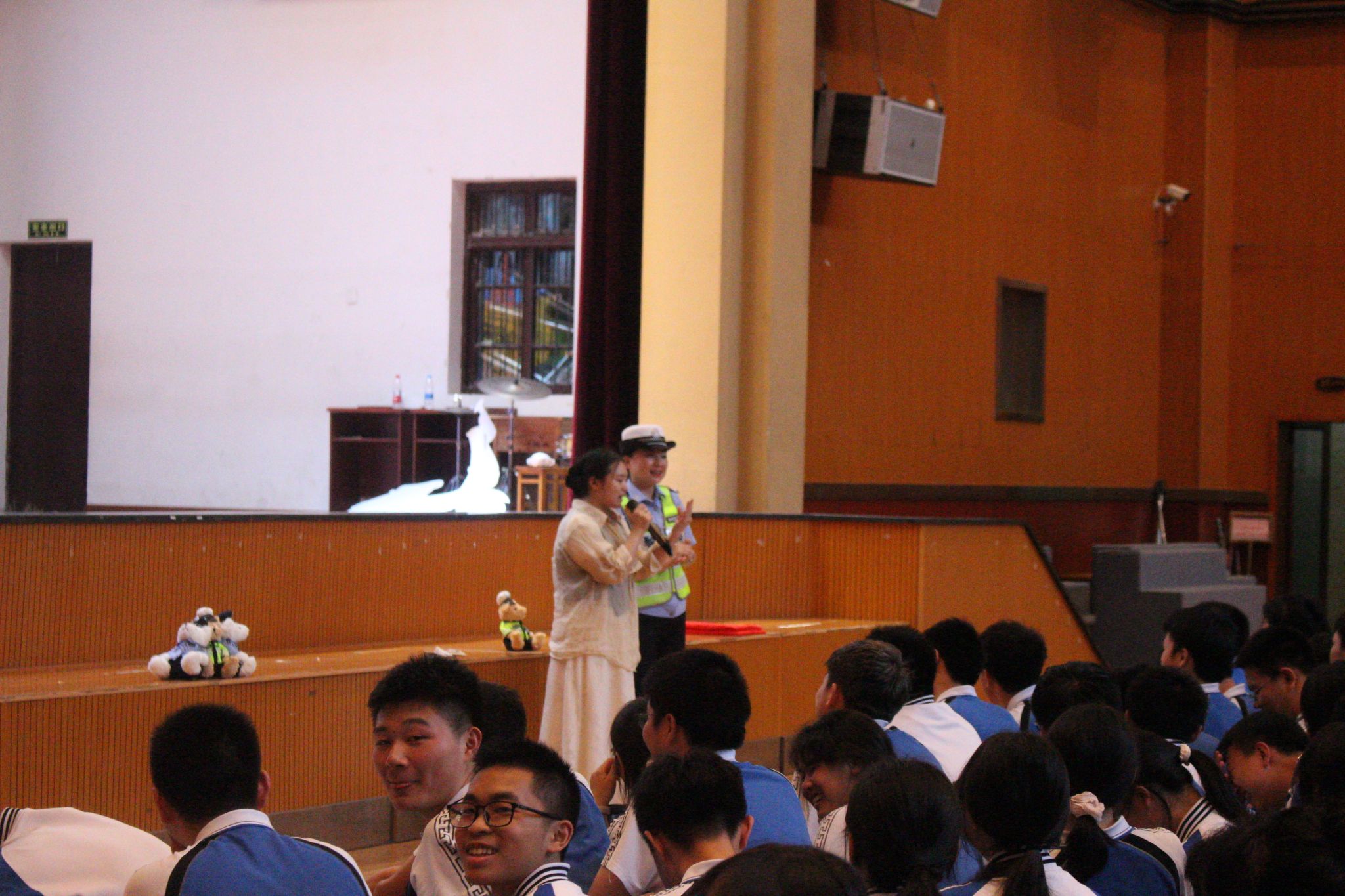 现场互动环节更是将气氛推向高潮,同学们与老师们都积极踊跃,纷纷举手抢答问题,展现出了大家对交通安全知识的强烈求知欲。而在抢答中表现优异的同学,不仅收获了可爱的交警小熊,更重要的是通过这种寓教于乐的形式,让“文明出行,安全第一”的理念深深扎根在他们的心中,为构建平安校园注入了新的活力。