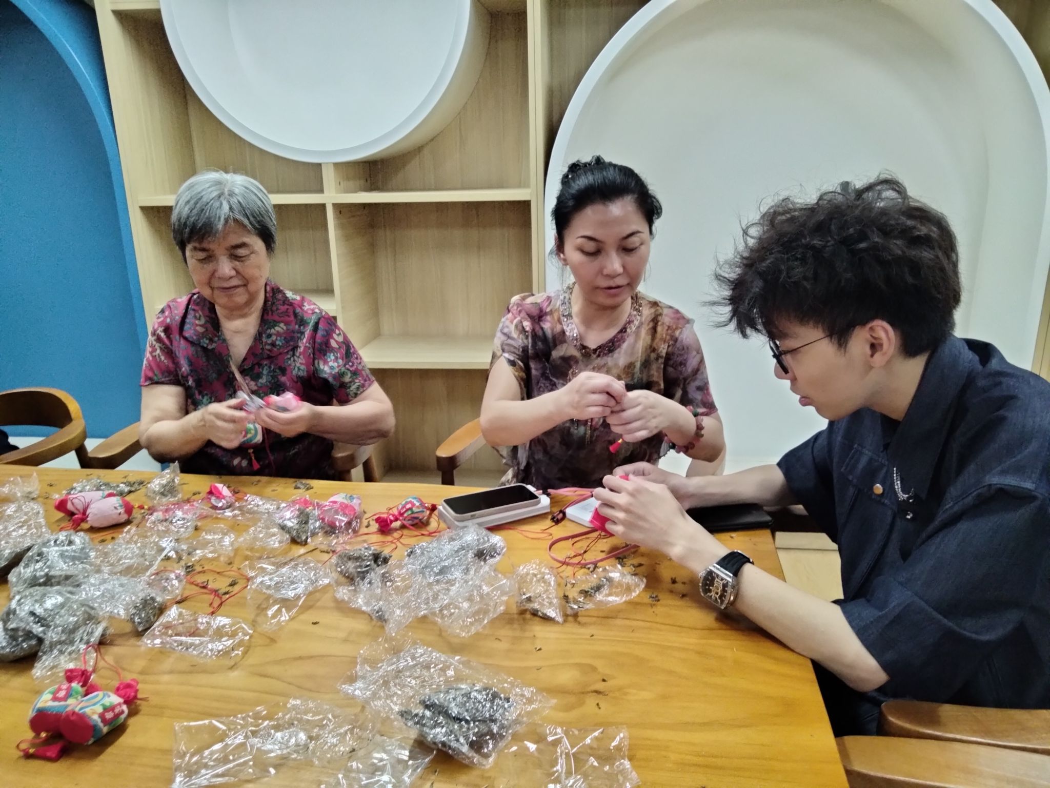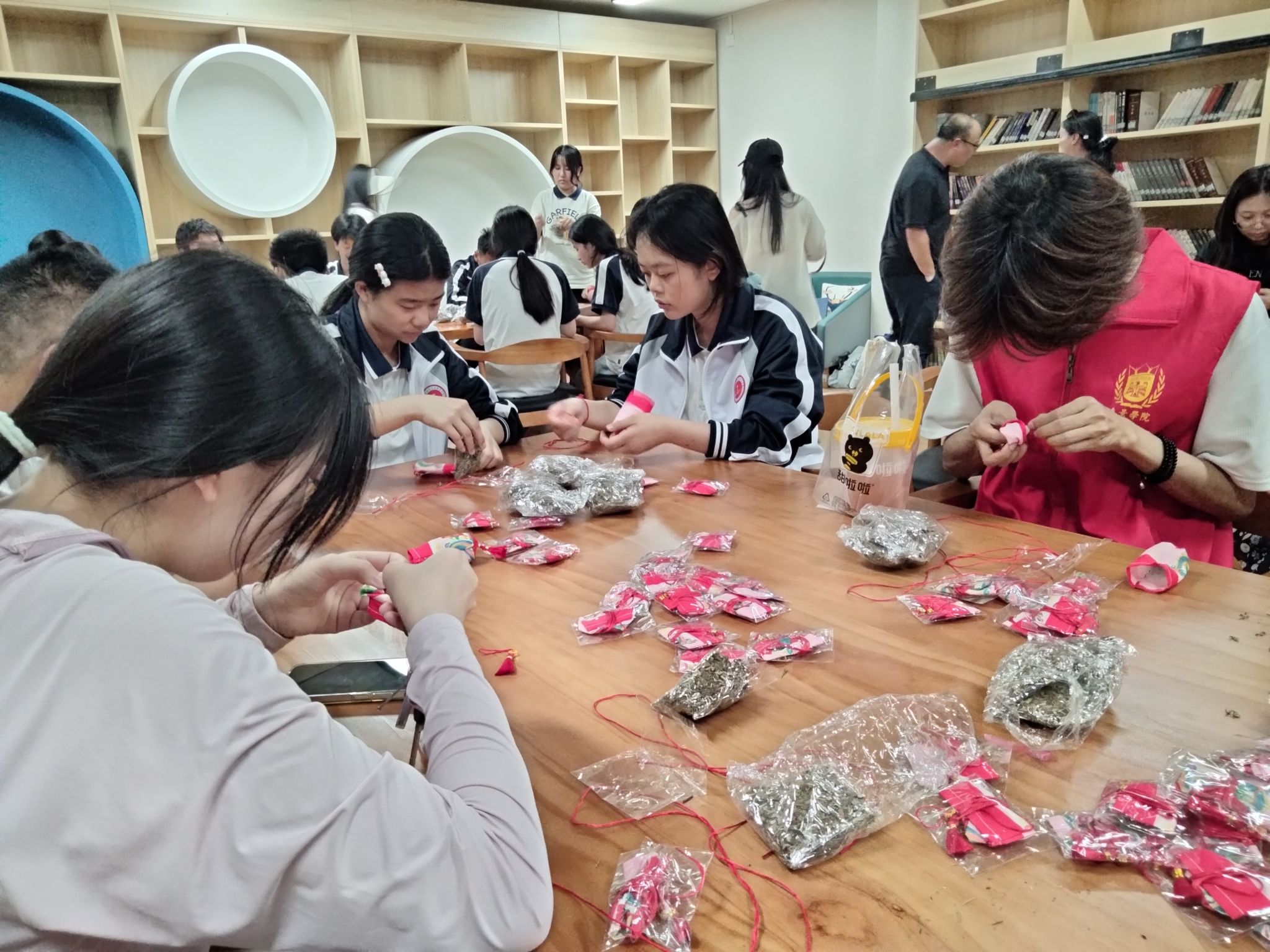 制作环节,大家仿若被注入一股传统文化的活力。远景学院的师生、家长与王良红军中学的学生们齐聚一堂,专注投入。从小心铺展香囊布料,到仔细填充香料,再到精心收口定型、缀上流苏,每一个步骤都饱含着对传统技艺的敬意与热爱。不同年龄、不同身份的参与者们,虽制作手法各有差异,但在相互交流、彼此帮助间,都深深领略到传统手工艺的独特魅力,一颗颗对传统文化向往与传承的种子,也在此时悄然种下。