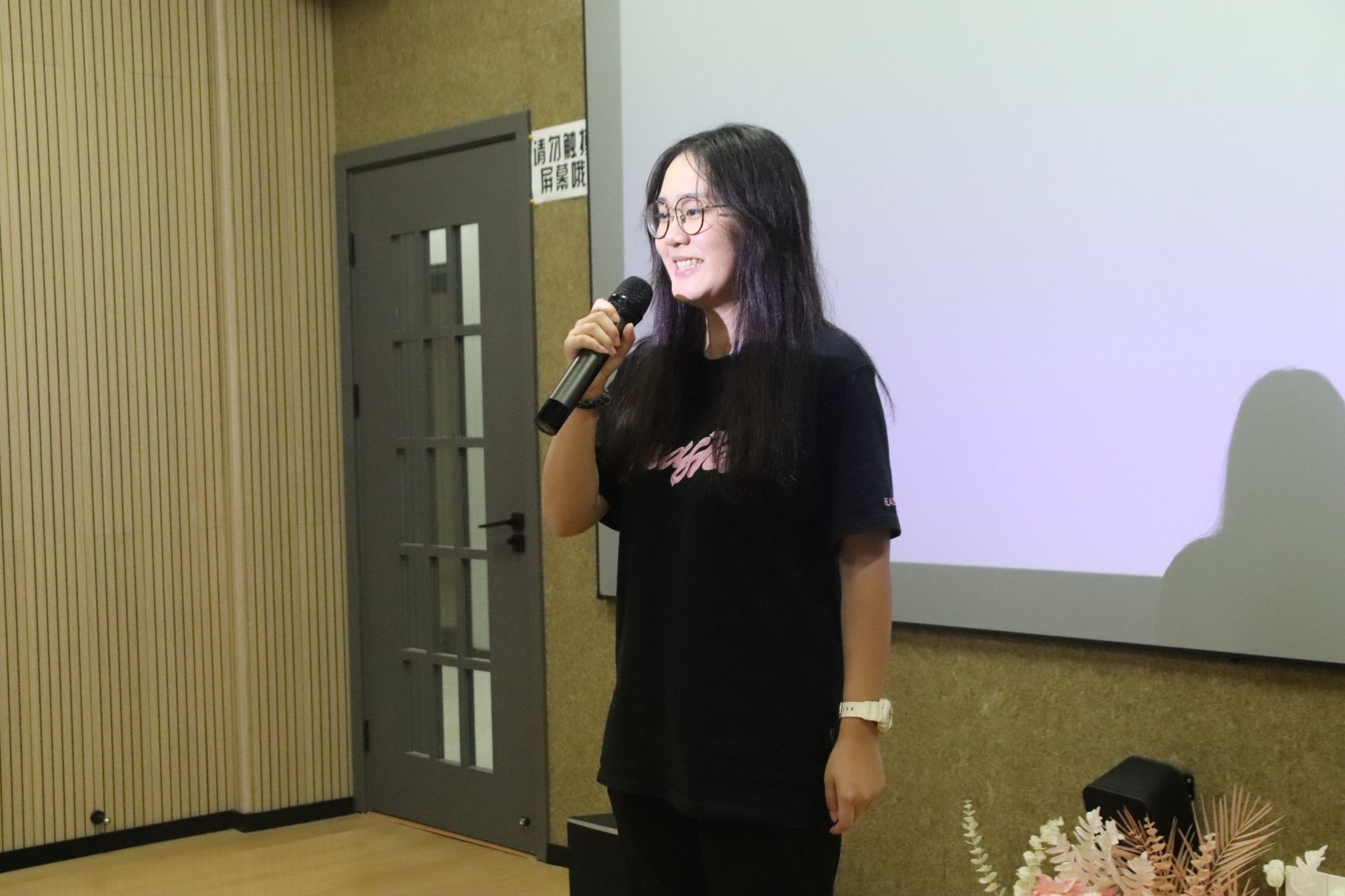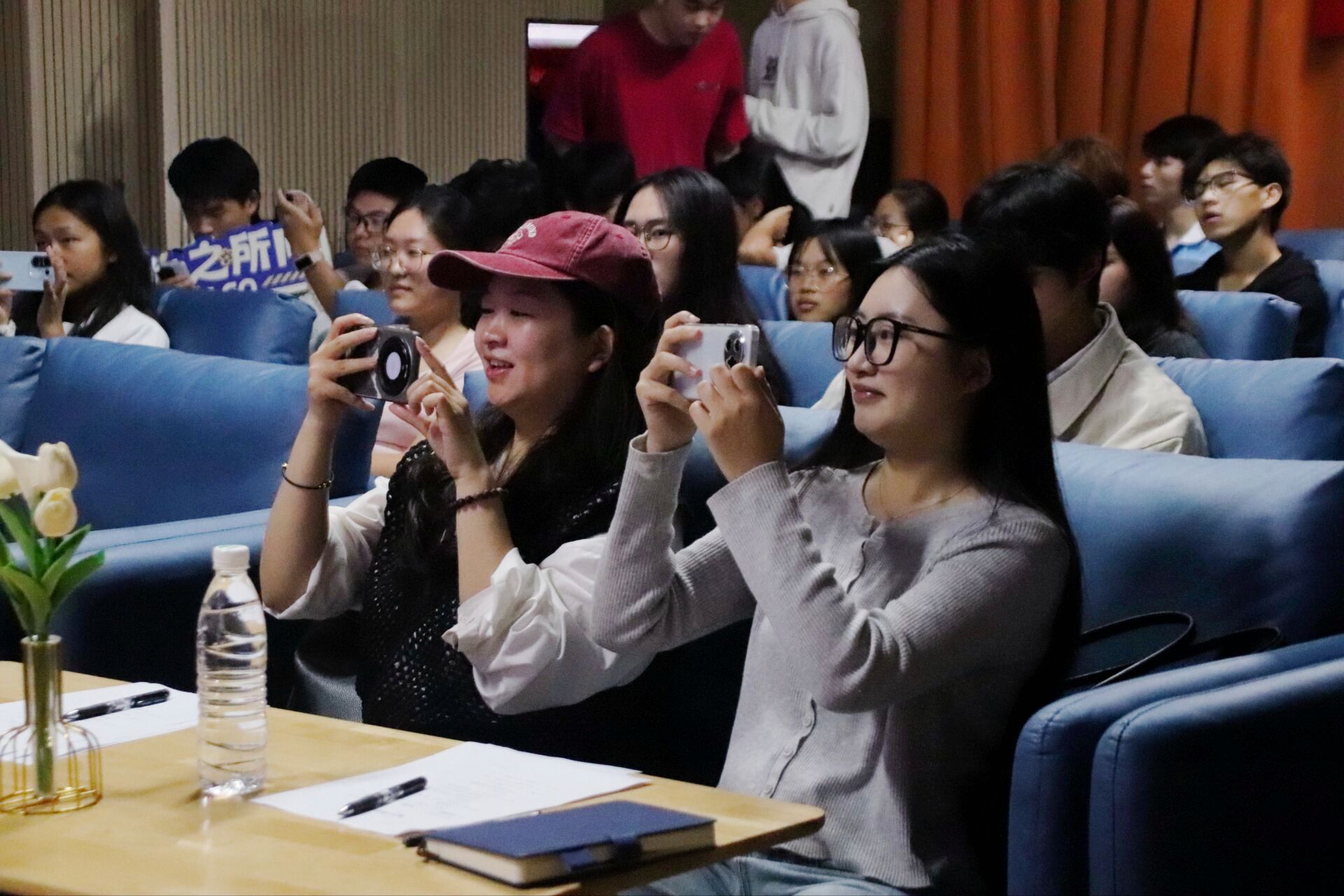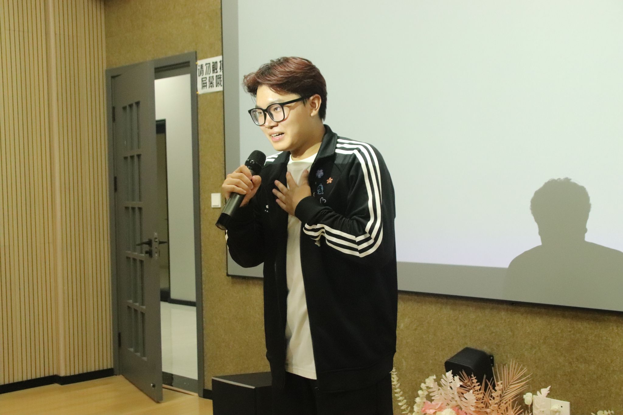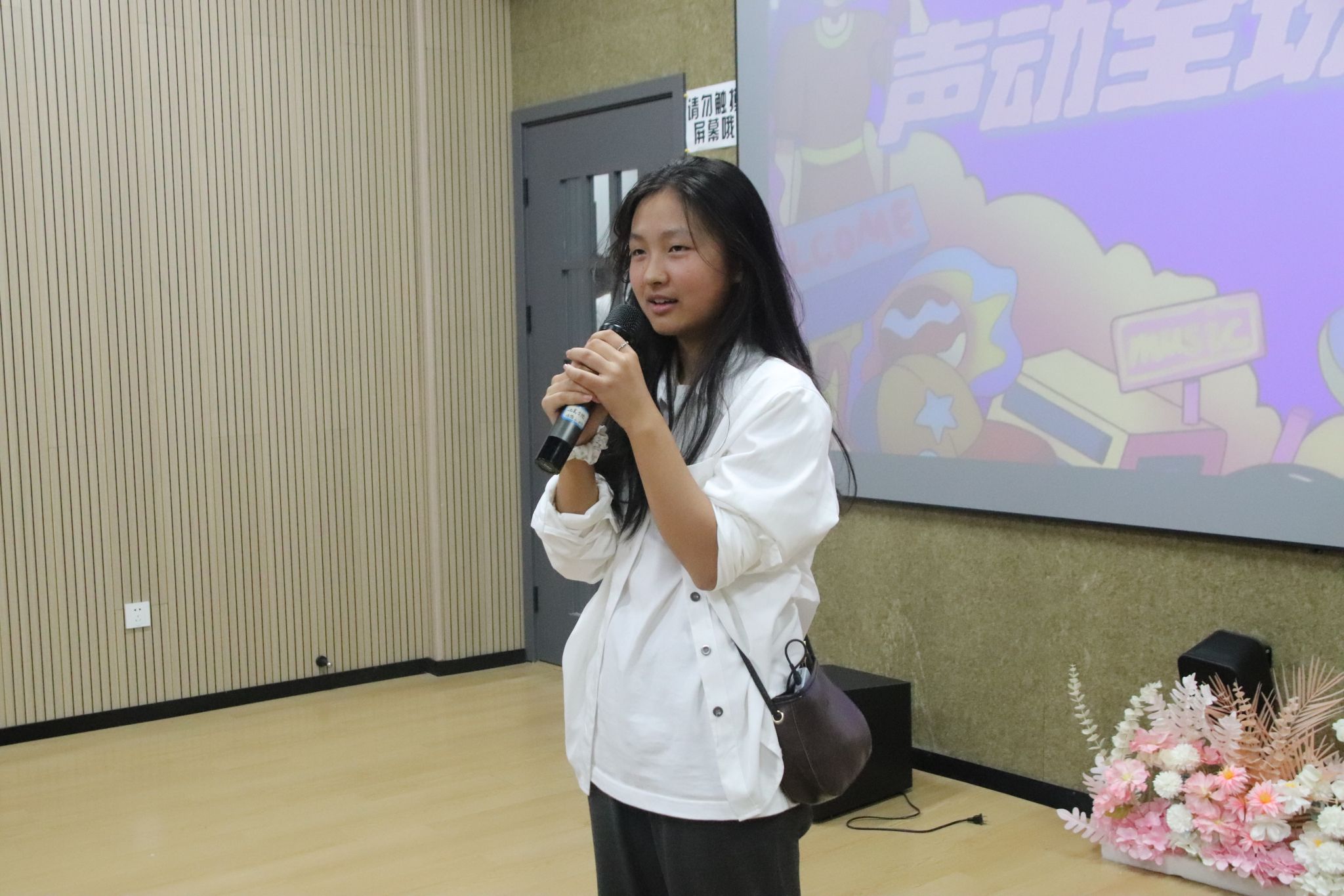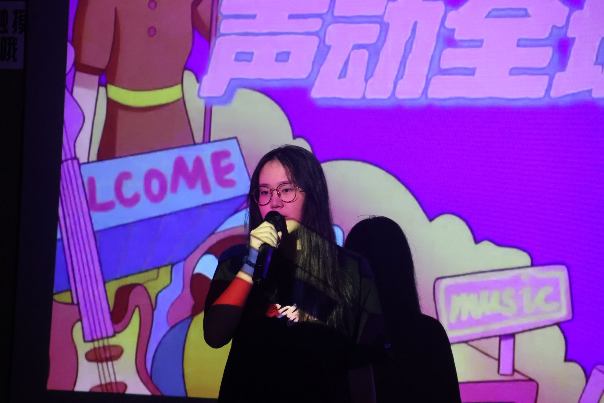 当最后一位选手鞠躬谢幕,全场灯光渐暗又骤然亮起,评委曾莉老师,在同学们的欢呼和呐喊中,登台献唱,一展歌喉,为这场音乐盛宴送上压轴惊喜。随着伴奏响起,曾老师以美声唱法演绎经典诗作《月下独酌》,瞬间将现场带入全新艺术境界。美声唱法特有的共鸣技巧让歌声如珠圆玉润,高低音区的自如转换尽显功底,将“举杯邀明月,对影成三人”的孤寂与洒脱诠释得淋漓尽致。古典诗词的意蕴与西方美声的张力在此刻完美融合,悠扬旋律在影音厅内久久回荡,真正达到了“余音绕梁,三日不绝”的艺术效果。台下观众屏息凝神,沉醉于这份跨越古今的艺术熏陶,待最后一个音符落下,掌声与喝彩声如潮水般涌来,持续良久,成为整场活动最动人心魄的高光时刻。