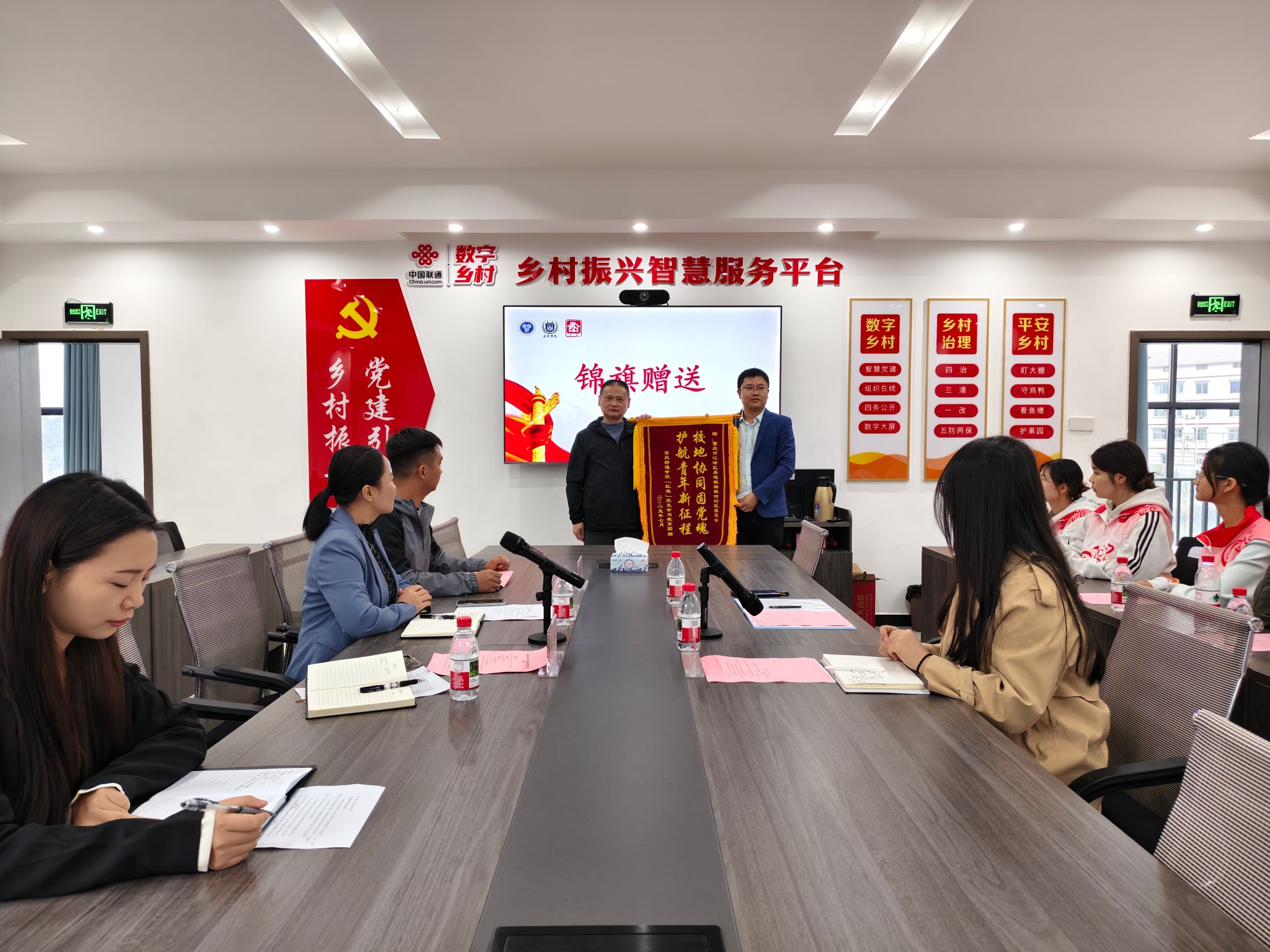 座谈交流后,现场举行了庄重的赠旗仪式。这面锦旗不仅是对村庄前期支持“三下乡”活动、助力实践基地筹备的感谢,更承载着校村双方携手共进的诚意,为后续长期合作注入温情纽带,进一步夯实了彼此的信任基础。