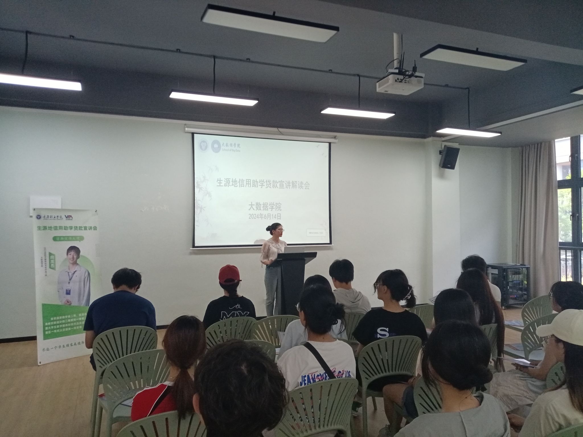 为进一步宣传落实国家助学贷款政策,切实做好2024年度生源地信用国家助学贷款申请和续贷等选粗汉相关工作,帮助每位家庭经济困难学生解决实际困难,确保困难学子无忧入学。大数据学院以班级分散、学院集中等方式开展了宣讲工作。2024年6月14日14:00在横山书院知物·多功能活动室开展了生源地信用助学贷款宣讲会,本次宣讲会邀请到学院辅导员雷淑娟老师、学生处资助宣传大使向茂杰同学为同学们进行了讲解。