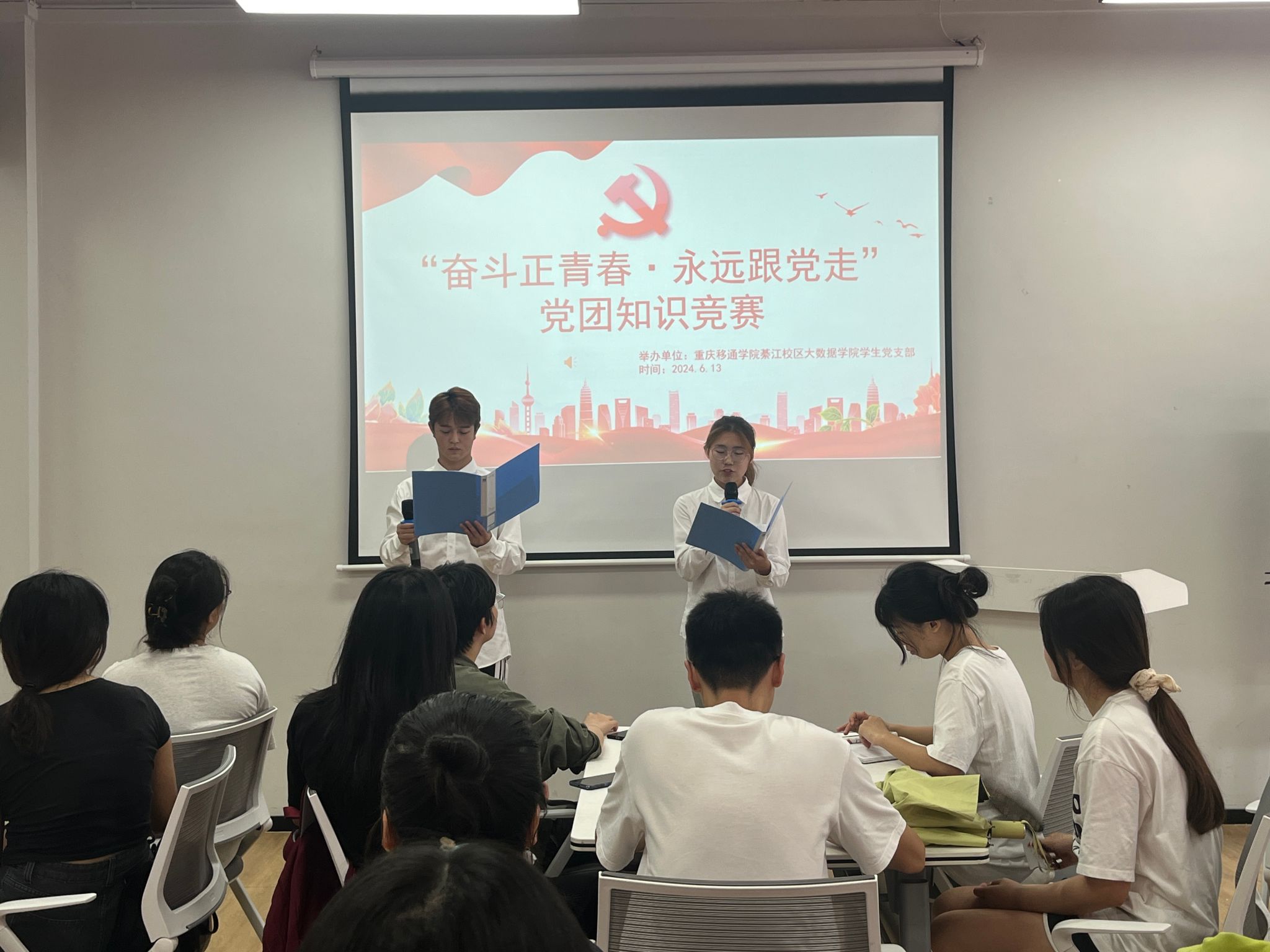 为进一步丰富大数据学院学生党支部党员政治素养,增强支部凝聚力与战斗力,更深刻学习、掌握党的知识和理论,2024年6月13日12:30,大数据学院学生党支部在玉棠书院扎堆朋辈空间开展了6月主题党日活动“奋斗正青春·永远跟党走”党团知识竞赛活动。党支部书记阙小梅老师、全体党员同志参加了活动。
