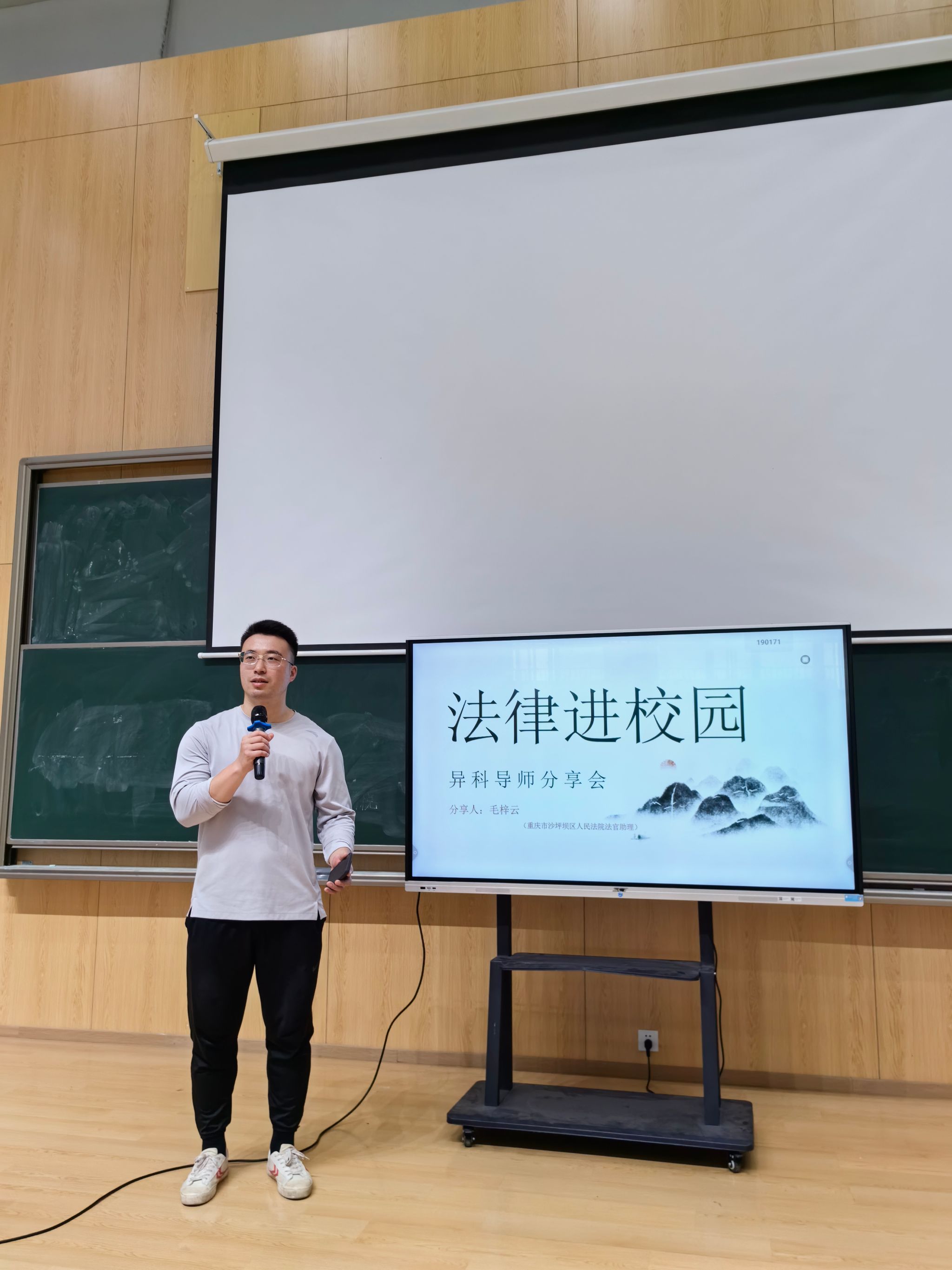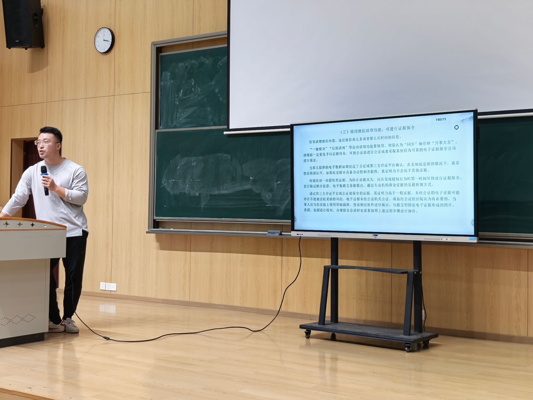 考虑到本次活动主题的专业性,特邀请了来自沙坪坝区人民法院的毛法官,就当前大学生在实习工作、社交交友、消费交易中常出现问题为同学们进行真实案例分享和法律应对手段讲解。