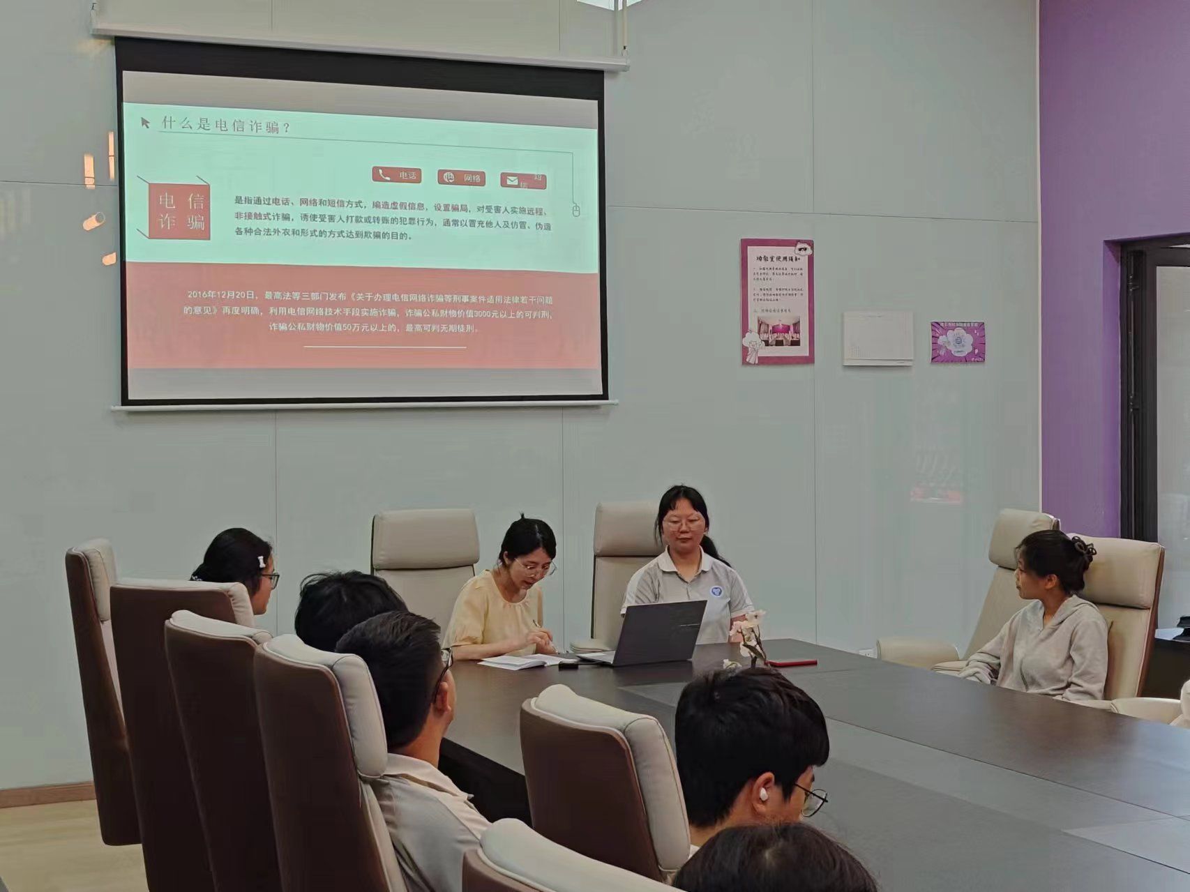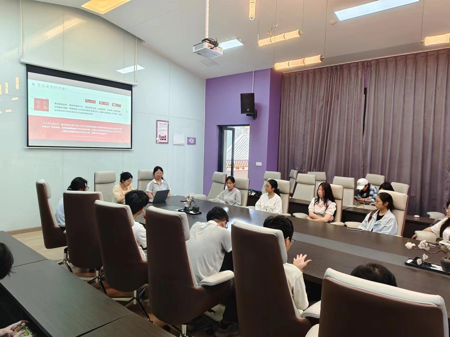 为进一步加强大学生电信诈骗防范意识,创造平安而美好的大学生活。大数据学院2023级虚拟现实技术2-3班异科成员于2024年6月19日下午在观云书院小雪会议室开展了大学生电信诈骗及安全教育活动。本次活动由异科导师黄秋燕老师主持。