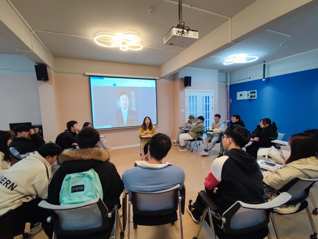 活动伊始,郑老师给学生讲解了大咖阅读的要求、奖励机制及活动计划,以后将定期带领大家开展导读、伴读、精读类阅读活动。接着,进入活动主题,郑老师从大家所熟知的华为制裁事件切入,给同学们介绍了任正非先生的人生经历,他从早年投身军营做基建工程兵,改革开放之后,遇到军队改制,转业到国企上班,时年43岁,遭遇失业、离婚、负债200万,带着自己仅有的2万余钱,在破旧的仓库创立了华为,之后在华为成长的过程中,还遇到思科对华为公司提出的专利诉讼、华为电信设备被禁等危机事件,然而任正非先生却能化危机为机会,把挫折变为经验,不断改革创新,带领华为成为世界五百强企业。紧接着,郑老师给学生播放了任正非先生的个人采访和华为发展史介绍的视频,让学生更深入的了解任正非先生的形象和华为公司的发展历程。