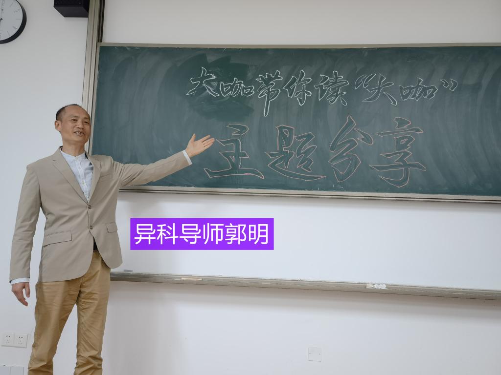 讲座以腾讯会议的方式举行,现场直播的地点选在仁者楼309室,时间是晚8点直播。五名异科导师和部分学生提前一个小时就来到教室,架机器,调设备,黑板上板书和PPT辅助,一切都有条不紊地准备妥当,大家同时发现,直播室已早早进来了近百名学生。当晚由著名作家、学院明星老师王恒绩作为本期主讲。本次讲座由学生主持人徐璐瑶主持,异科生瞿钰林同学负责摄影和录制。