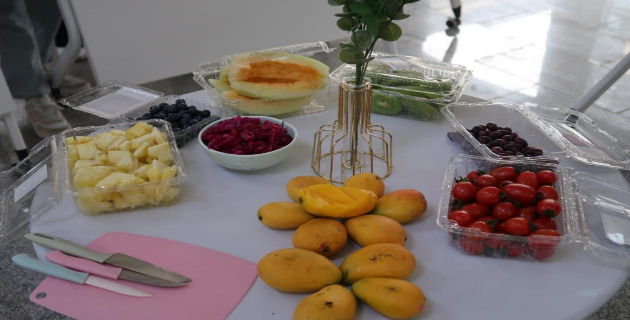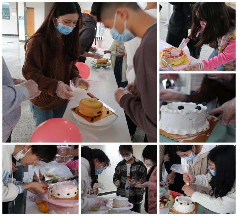 此次活动的重点就是让同学们通过自己制作食品来让同学们意识到食品安全的重要性。为了落实“食品由我做,安全我把关”主题,提高同学们的食品安全意识,因此开展了线下蛋糕DIY活动。齐全的各式工具,精美的蛋糕原胚,校内食堂提供的缤纷水果,以及热情无比的同学们,让春天的多彩、青春的活力在此刻绽放得淋漓尽致。随着“食品由我做”活动的开展,会场气氛来到了最高点,在这里,现场听到的不仅仅是同学们的喜悦,更有诸如“注意戴手套、注意戴好口罩。”这类言语在互相提醒之中生根发芽的食品安全意识。
