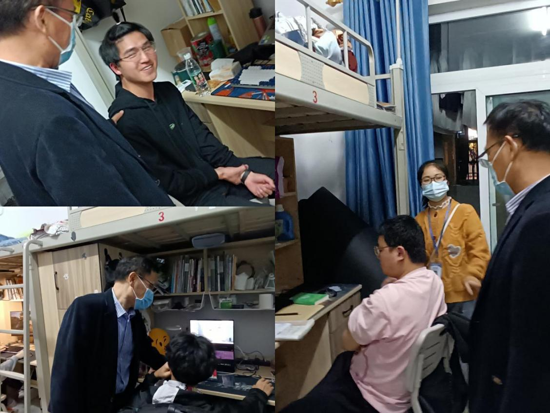 “咚咚咚……”老师们来到綦河书院1号楼,走进宿舍内部,与同学们交谈起来,“对近期学校的疫情防控管理服务工作还习惯吗?近期如何调整学习和生活安排?心理上有没有什么不适应的地方”一个个常见的问题,在老师们关切的话语中体现出暖暖的情意。面对老师们关心关切的询问,同学们也表示生活和学习上的影响较小,各种问题也能够找到老师寻求帮助、及时解决,对学校疫情防控管理工作表示满意。