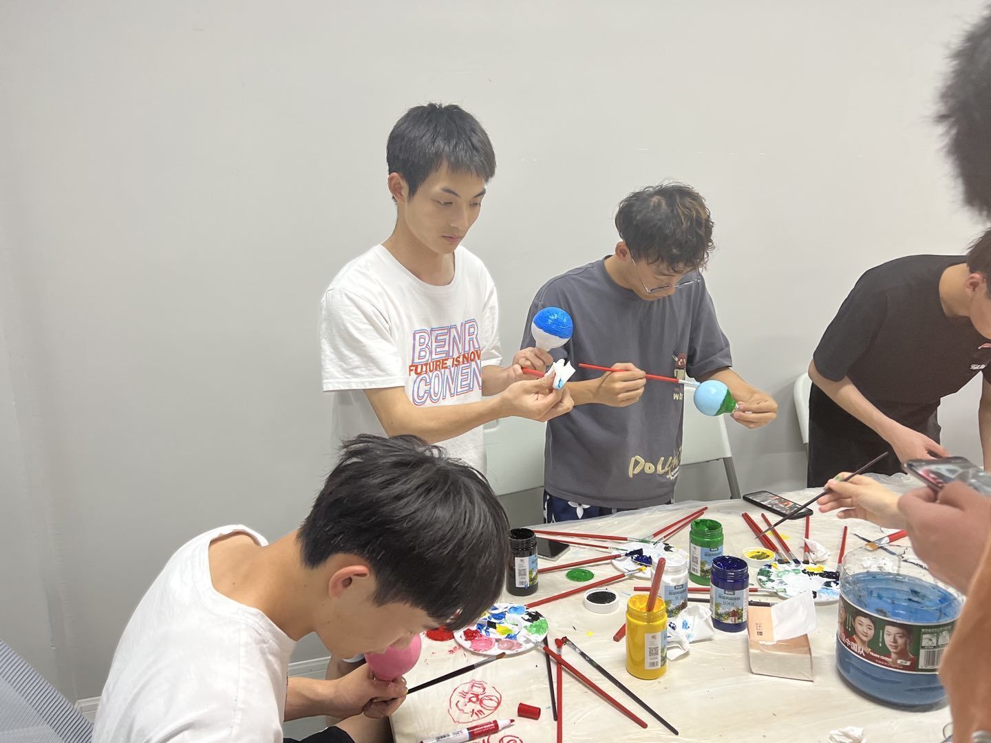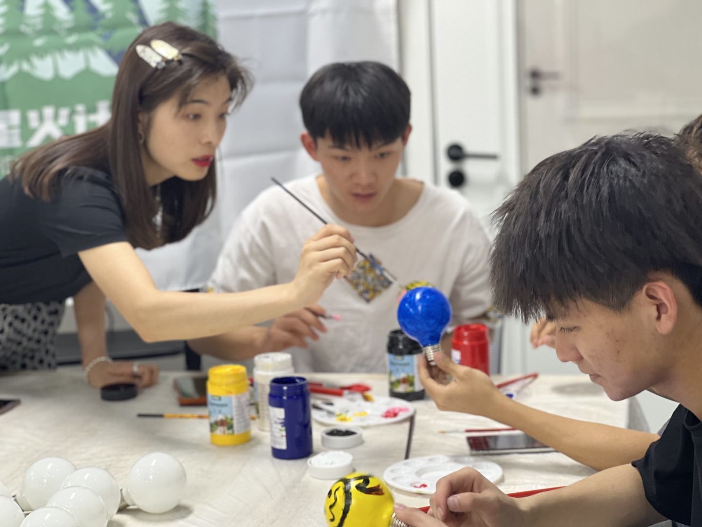 同学们在刘岩老师的带领下,将书院废弃灯泡变身书院软装,平淡无用的灯泡经过染色、绘制进行改造提升利用率,二次变身后的灯泡颜色鲜艳,各具姿态,全生星火计划LOGO、有精美的花朵、表达爱意的笑脸......通过此项活动,既提高了同学们废物利用和环境保护的意识,让同学们在欣赏、动手操作中感受到了民间艺术的丰富多彩,又让书院装扮充满仪式感,让浪费变成可持续的浪漫。