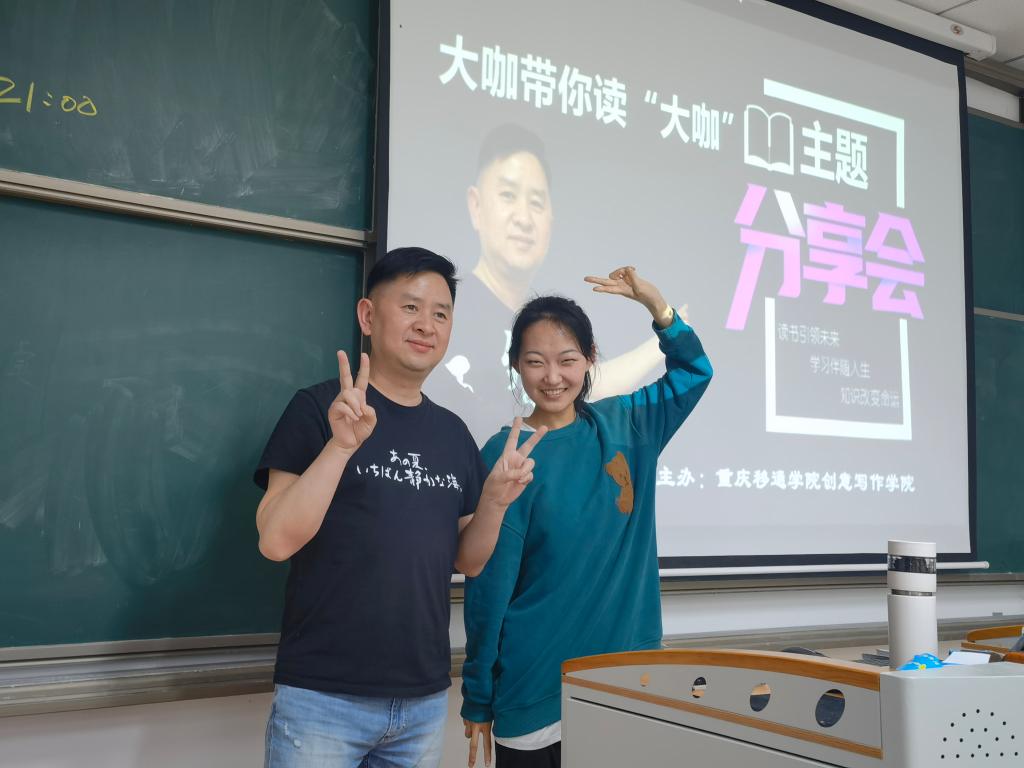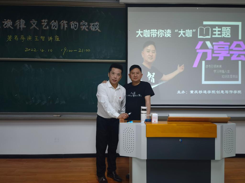 綦江校区创意写作学院一共有五名异科导师(含一名合川导师),上个月联手请一名作家老师在仁者楼讲课,近200名同学云上听课,弹幕不断,交流不断,反响奇好。去年,创意写作学院意外地挖到了著名导演王智来我校担任专职教师,令人喜出望外。学生都是影视剧的爱好者,他们有很多困惑待解,他们对明星的打探有着强烈的好奇心,那么我们近水楼台先得月,安排一场学子们与大导演近距离接触的机会。当我们向王智导演发出邀请时,他欣然同意,提前从合川赶到綦江。