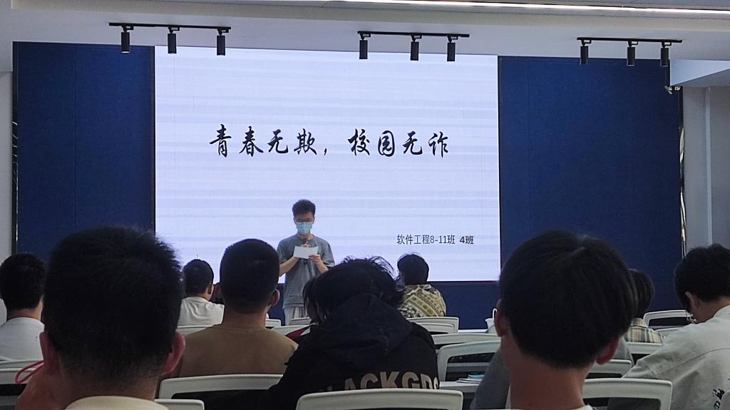 讲座完毕后,学生代表上台发表了言论,让在场的每个学生都对诈骗有了新高度的认识,总结了此次讲座的意义,相信这次讲座后移通学院被诈骗的次数会大大的减少,当然这次讲座也增进了异科老师与学生之间的关系,让老师对学生的反诈骗意识有了一定了解。