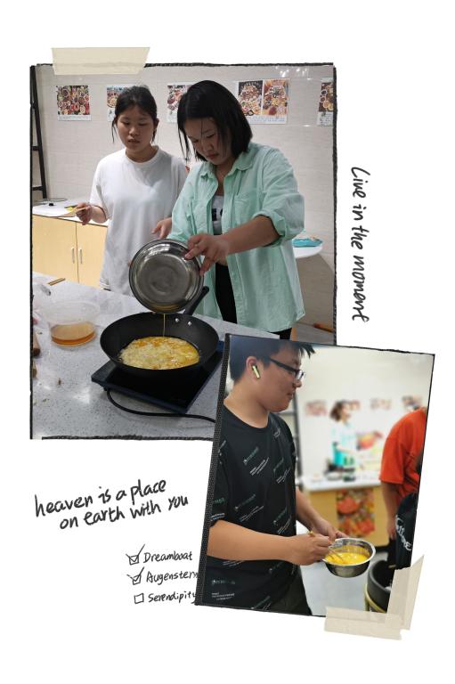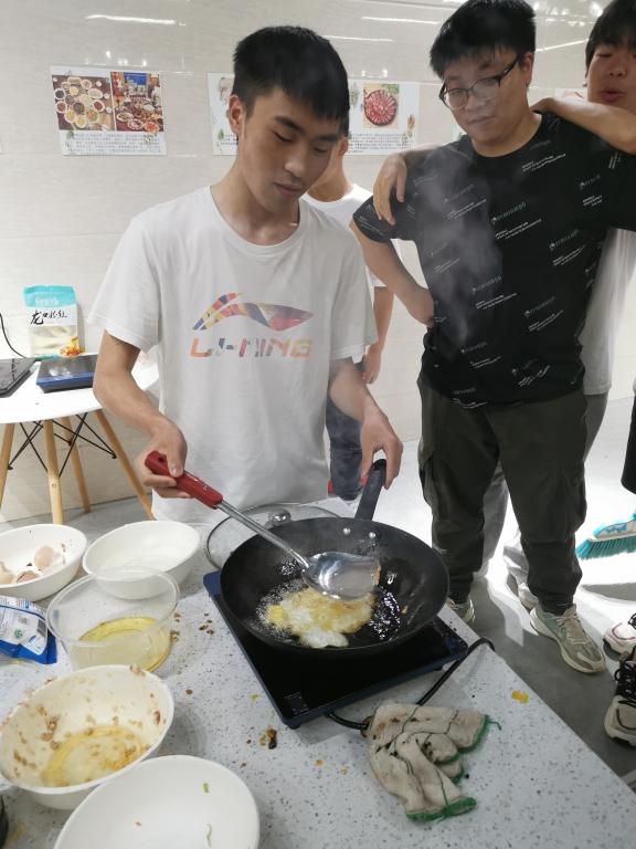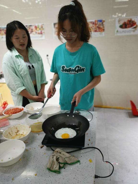 吃完饺子,大家便开始了个人秀,有为同学们煎蛋的、炒菜的,围观的同学也是不少“你加点盐”、“加点蚝油”、“你的油不够了”、“不放生抽吗”同学们发表着自己的看法,现场的氛围其乐融融。
