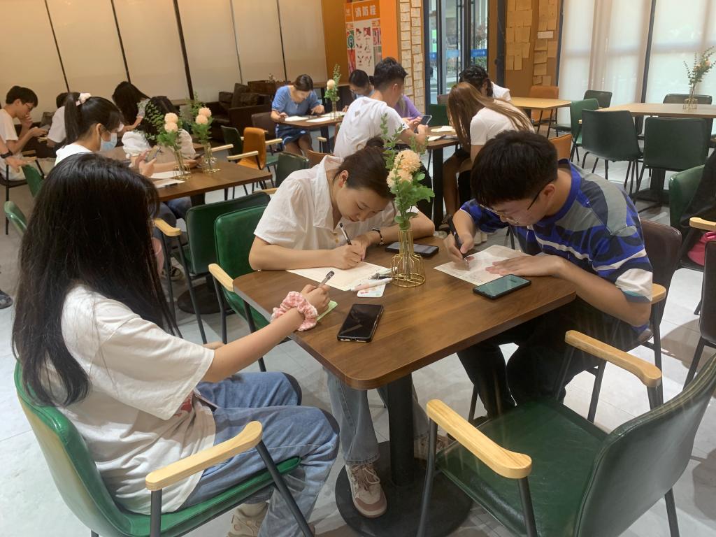 2022年4月27日下午18:10,信息安全学院全生异科导师黄海军、杨宏志、王辅崇、郑慧娟四位导师带领大数据与计算机科学学院的学生联合举办的书法比赛在学校东篱故事茶馆开展。此次书法比赛分为初赛和决赛两个环节,四位导师们提前准备,先组织自己的学生举行初赛,通过初赛结果推荐5名同学代表参加最后的决赛环节。