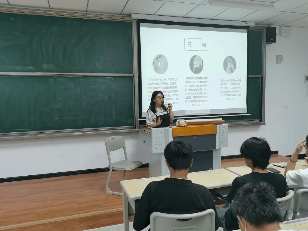 以上便是此次读书分享会中三位同学对自己所阅读的书籍进行的分享,“书生意气,挥斥方遒”,也希望各位同学在生活之余多读书,勤读书。最后,由本次“大咖阅读分享会”的策划者吴小瑞老师进行总结。针对姚晓波同学分享《任正非传》,希望大家通过任正非学会坚持以及实践出真知的道理。因为现在很多的同学缺乏坚持,总是半途而废或者还未开始就结束,或是大脑全是想法但从未去尝试过。杨盈同学分享了《刘强东崛起的智慧》,刘强东作为一个成功的企业家,他有太多供我们学习的方面了,踏踏实实的做事,成功不忘本,十年如一日的工作。杨青山同学分享的《支付战争》,教大家如何应对融资紧张、突破增长瓶颈,可以联系到生活实际,然后在逆境中翻盘,决战中取胜!