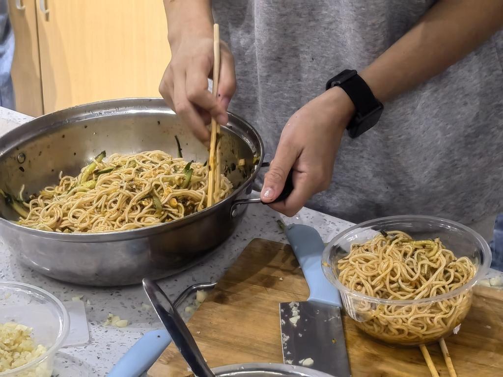 在5月18日和5月21日,由周晓蝶和李俊颖导师带领软工10班、11班的同学在綦河书院二号楼的共享厨房功能室进行了以“夏日凉面‘拌’起来”为主题的异科活动。本次活动旨在全面贯彻教育方针,丰富同学们的业余文化生活,培养同学们的制作能力。同时,营造健康和谐积极活泼的校园氛围,让每一位同学站在丰富多彩的大文化背景下真切地感受到文化教育对智慧的启发和心灵的陶冶,带来内心的充实和谐与快乐,切实的起到拓展素质教育,推进校园文化建设的作用。