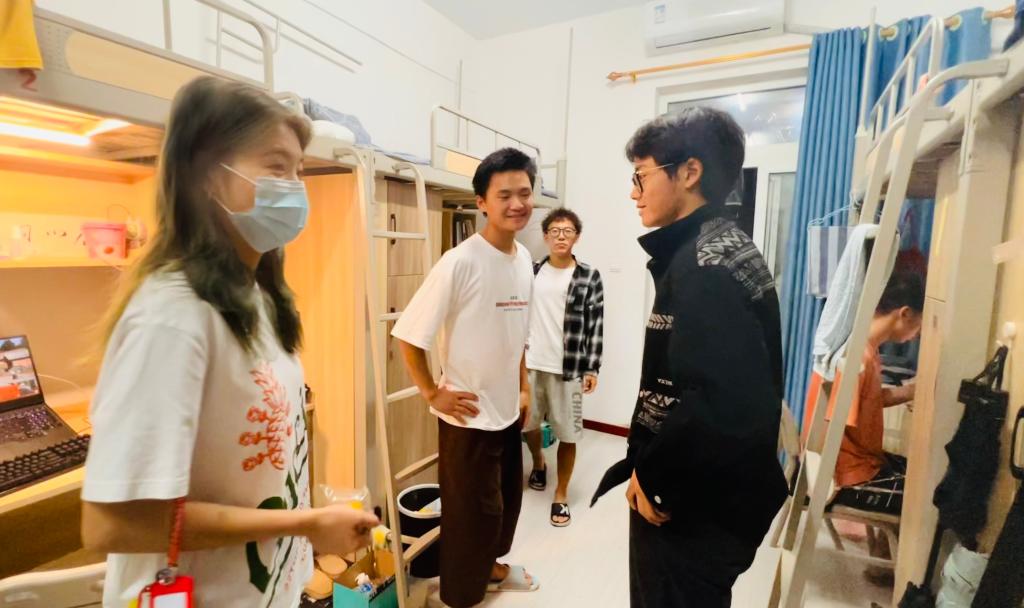 在走访寝室的过程中,异科导师刘岩老师和马慈老师详细的询问学生们返校后是否适应,特别叮嘱同学们进出佩戴口罩,做好个人防护。在寝室要勤通风、勤打扫。另外,两位老师还问到同学们新学期有哪些计划等等,并嘱咐同学们尽快调整好状态,谋划好新学期的个人计划,尽快进入到新学期的轨道来。