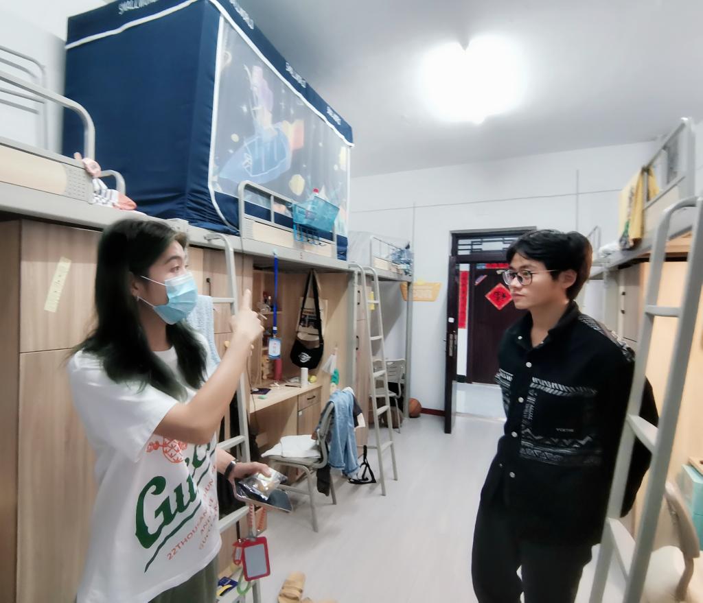近日,大数据与计算机科学学院全生异科导师刘岩老师和马慈老师连续走访学生寝室,与同学们亲切交流,关心同学们的学习和生活情况,提醒同学们做好寝室卫生和个人防护;在用电问题上,同学们应该小心谨慎,防患与未然;在寝室上网课期间,端正学习态度,紧跟老师的教学计划与安排等。