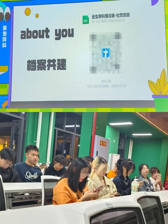 随后,杜老师亲切地向大家解释了什么是全生异科。通过她的讲解,同学们清楚地了解到全生异科是我校举全校力量推行的一项特色育人举措,通过学科交叉融合,四年导师陪伴,为同学们构建多元的成长环境,助力学生成长成才。