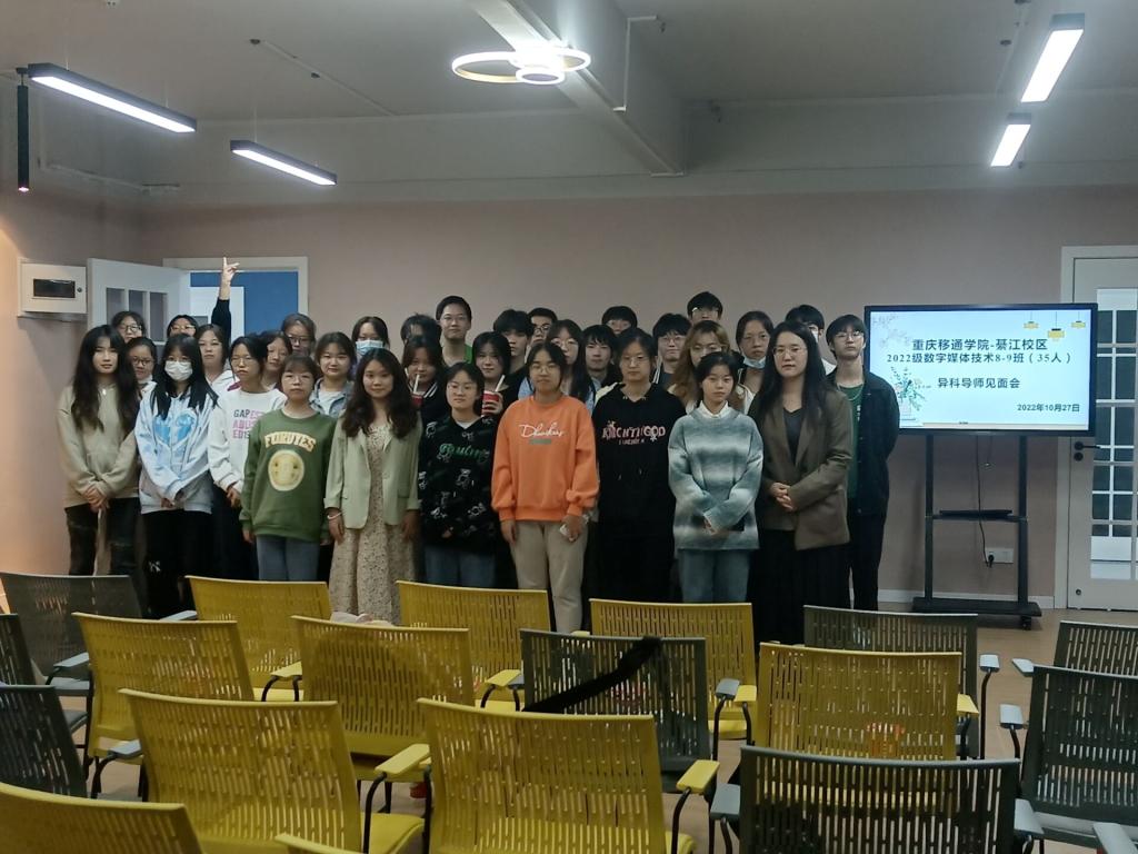 2022年10月27日星期四晚上7点,异科导师朱英老师与来自大数据与计算机科学学院2022级数字媒体技术8-9班的35位学生在綦河书院3号楼创客交流空间举行了第一次异科师生见面会。