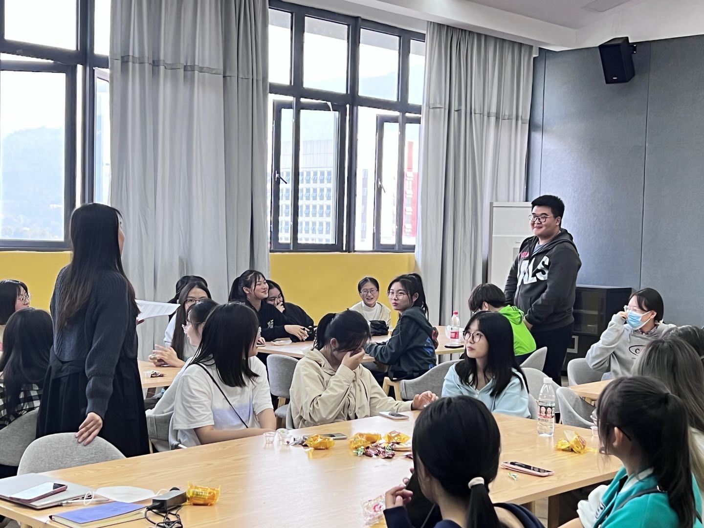 相遇是美好的开始。会议开始前,潘锐老师为大家精心准备了一些小零食,让大家在边吃边玩的轻松氛围中开启活动。随后老师先进行了热情洋溢的自我介绍,同时告诉同学们全生异科导师是什么,为什么要进行异科导师活动,异科导师活动有哪些,以及应该怎么参与异科导师活动。潘锐老师逐一邀请同学们相继进行自我介绍,重点介绍自己的特长与爱好,同时鼓励同学们深入发展自己的特长,广泛发展自己的爱好,积极参加校园活动,合理安排时间,保持良好的心情,学会调整自己的心态。同学们都十分活跃,参与感满满。