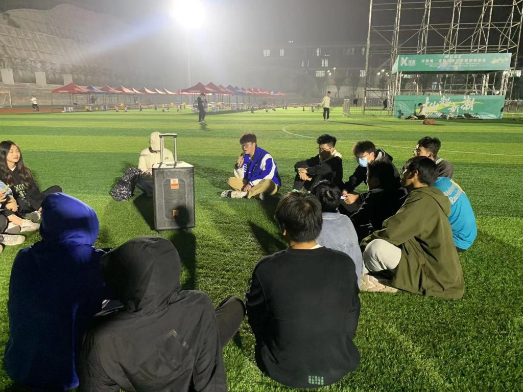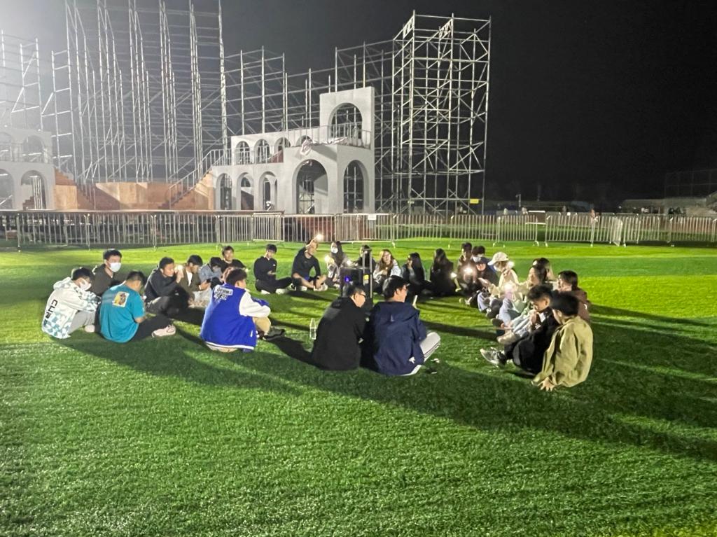 疫情突然袭来,是校园生活蒙上了一层阴霾,冬季更显寒意,但同学们心中的暖意却能温暖你我。为抗击疫情,同学们遵守学校的抗疫措施,同学们在寝室封控了一个星期。为了让同学们走出寝室,来到操场,强心理,增感情。切实引导学生心理健康成长,释放负面情绪,于11月21日19:30,异科导师马秀坤老师和计科5班的同学进行了一场音乐交流活动,同学们积极踊跃歌唱,用歌声释放自己的情绪,同时也增进了同学们的感情。