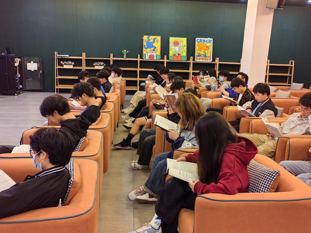 活动开始,同学们都带着书陆陆续续进入并且依次坐满座椅。秦老师简短讲述了读书的重要性后就让同学们开始阅读。读过一本好书,像交了一个益友。在人生旅程中,我们值得花费时间去交多个益友。