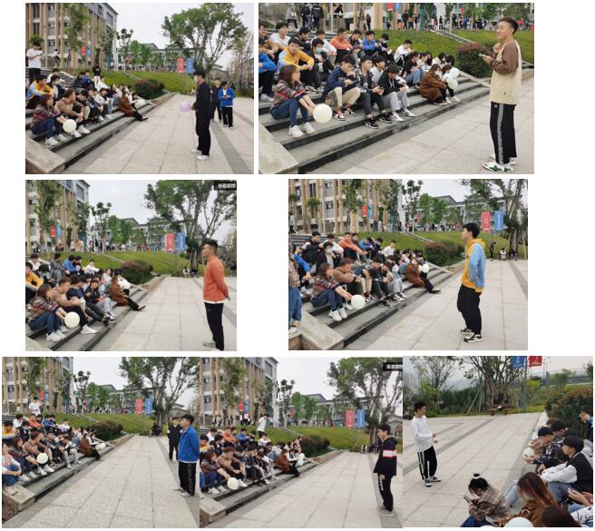 第二个环节,气球大乱斗。将同学们分成人数相同的粉、蓝两队,分散在规定区域内。发令后,在保护好自己气球的同时踩破对方的气球,最终气球剩余最多的队获胜。刚开始,大家都蠢蠢欲动,互相试探着对方,突然,几乎同时,就像是找好各自的“猎物”一样,开始躁动了起来。每个人都前顾后盼的,侧着身子去踩其他人的气球。慢慢的大家融入了活动之中,队伍变得更加团结,解放了天性,释放了内心,混乱、激烈、呼喊、欢声笑语是现场的状况。