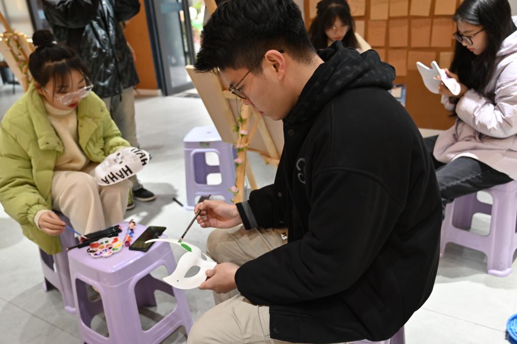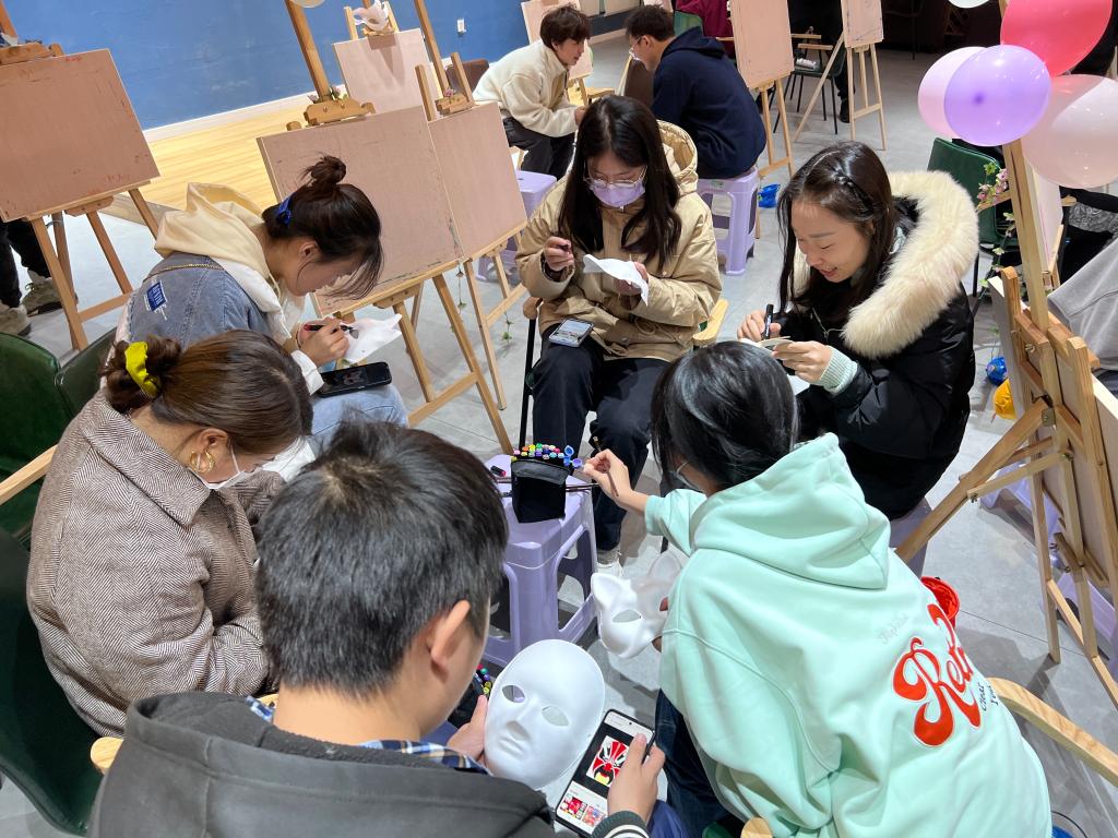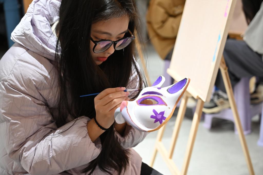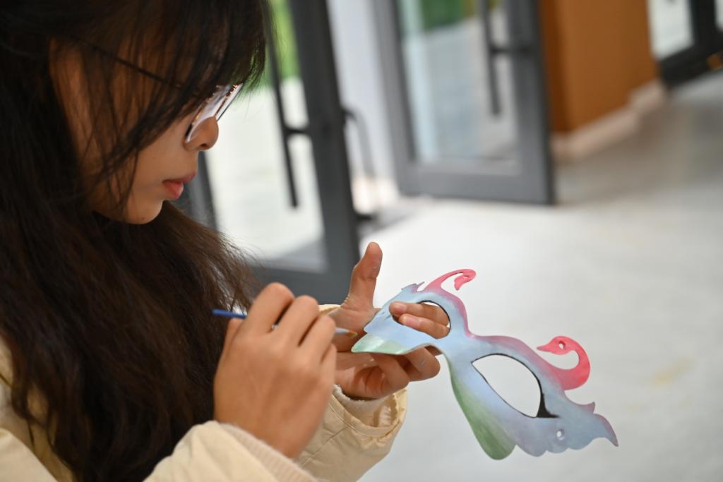 活动过程中,老师和同学们自选喜欢的面具款式,在面具上画出各式各异的草图,细细斟酌之后,陆续涂上自己满意的色彩,进行现场创作,大家用画笔书写故事,用面具表达心情,尽情发挥自己的绘画天赋,宛如参加一场“绘画盛宴”。