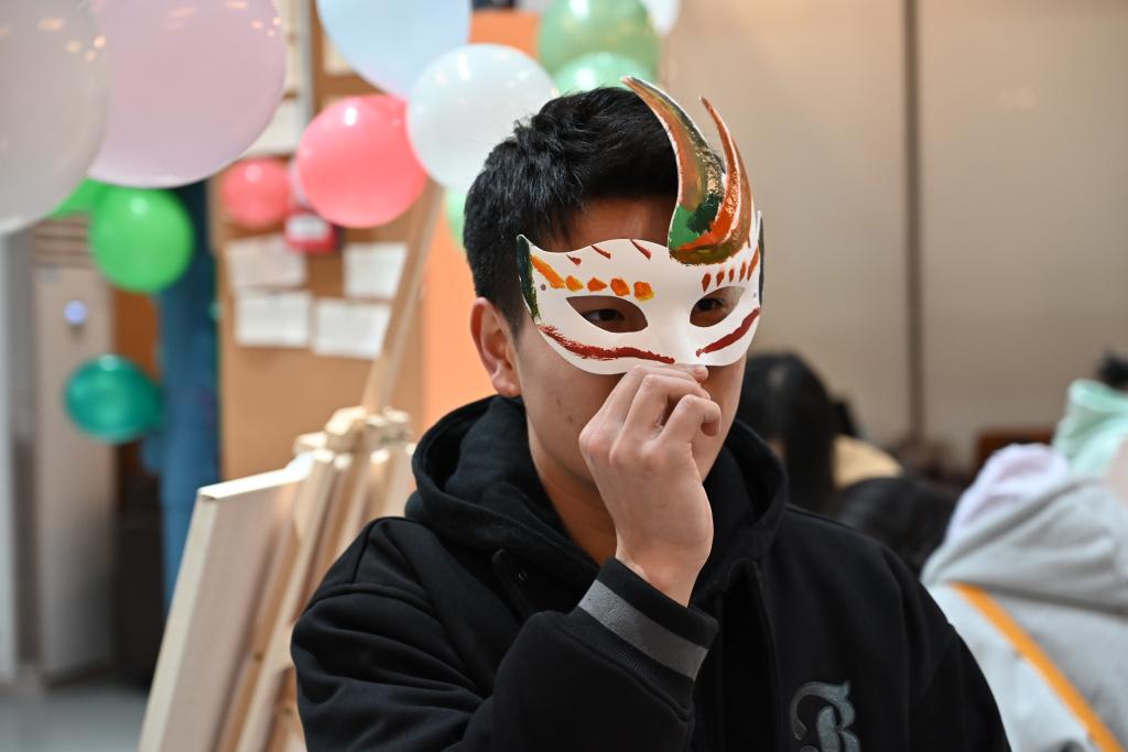 本次活动不仅丰富了同学们的课余时间,缓解了同学们的心理压力,更让同学们在面具绘画创作中感受心灵与艺术的沟通,一张张充满人格色彩的面具更彰显了新时代大学生的青春活力。