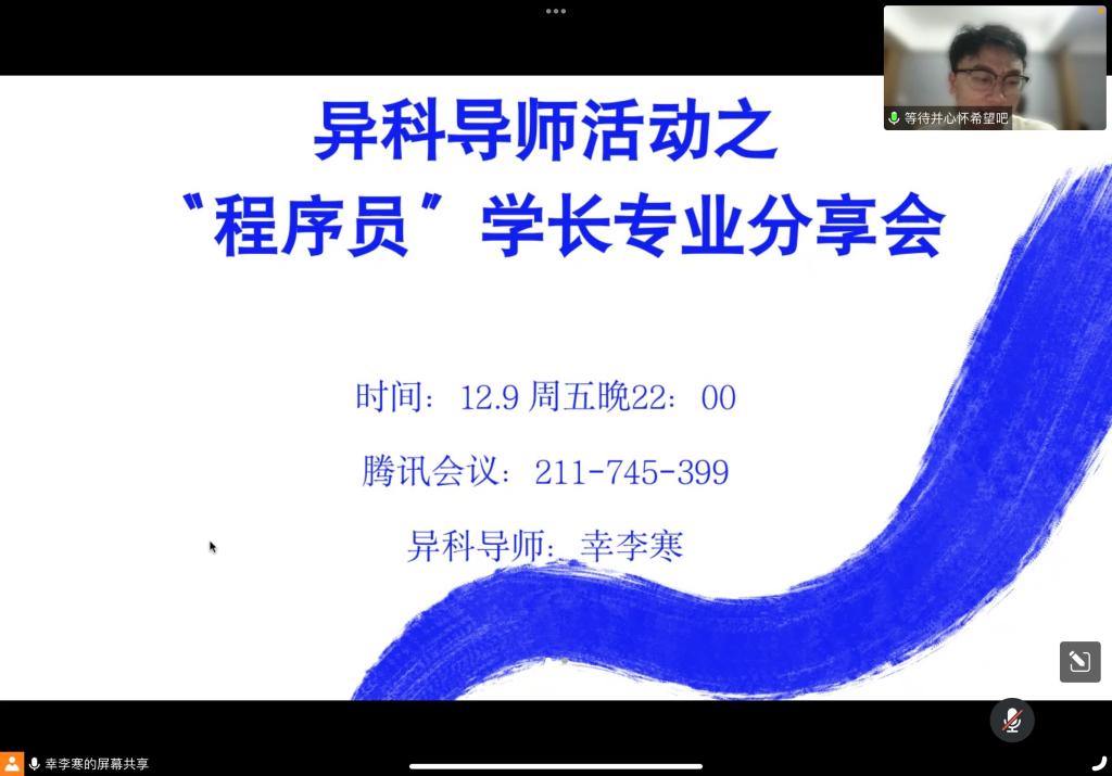 语言需要从哪些方面入手”之类的专业问题,也包括就业前景与就业环境等职业规划问题。在分享会上,“程序员学长”对相关问题一一解答,解答范围涉及“自学方式”、“面试能力”“考研难题”及“如何提高自身竞争力”等内容。学长也非常贴心地给大家推荐了相关网址、论坛或书籍。希望能解决大家的实际难题。
