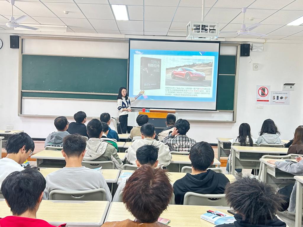 莎士比亚曾说“书籍是人类知识的总结。书籍是全世界的营养品。”为积极响应我校“信息产业大咖传记阅读计划”,培养学生们的阅读习惯,在阅读中不断反思与成长,3月15日下午,2022级计算机科学与技术专业11班和12班的30余名学生在异科导师郝晓丽的带领下,通过“老师领读+学生畅读”的形式开展了《特斯拉传--现代的发明者》的大咖阅读分享活动。本次活动邀请了马克思主义学院简云丹老师参加。