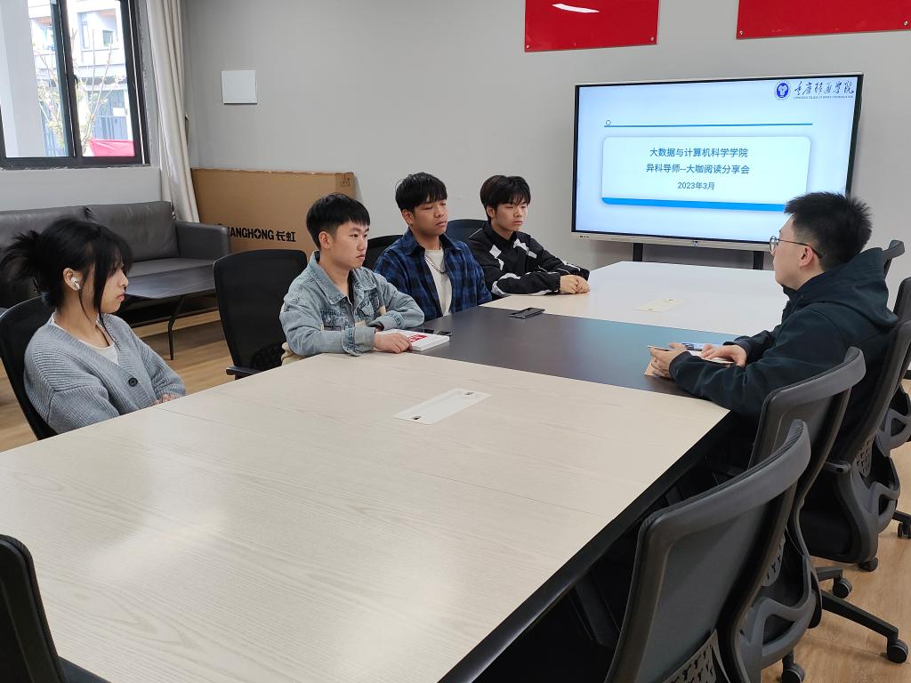 读书有道,学亦思辨。为培育学生理念与管理者思维,助力青年学子加强个人思维锻炼,深化阅读带来的思想感悟,3月23日全生异科导师彭昇带领大数据与计算机科学学院2022级1-2班的同学,在横山书院党团活动室开展了大咖阅读分享会,帮助同学们在阅读信息产业大咖传记中挖掘有价值信息,在交流中感悟,在思考中发声。
