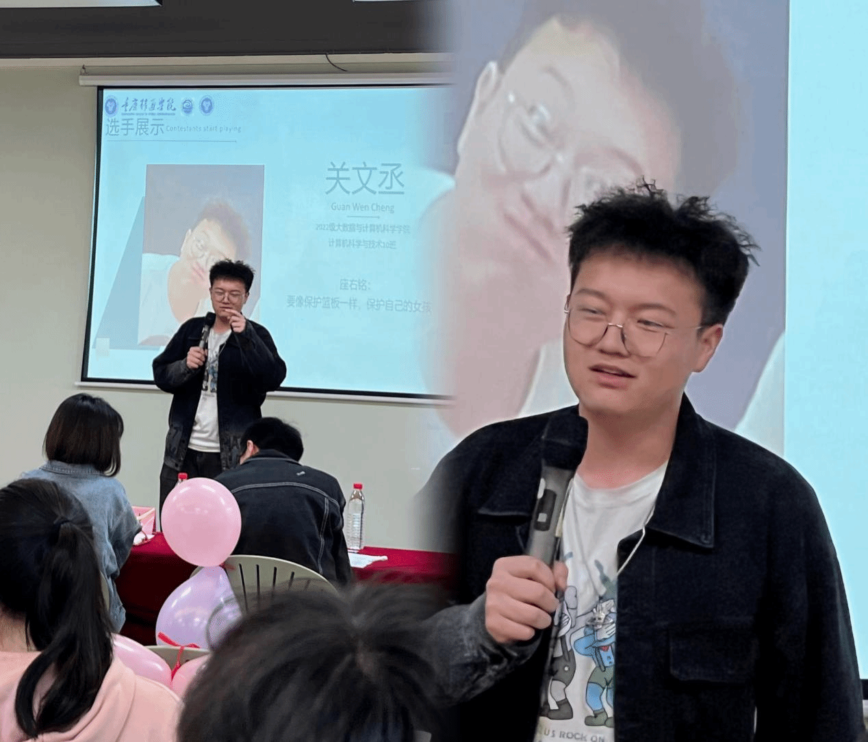 3月31日14:00在横山书院知物多功能活动室计科10–11班同学们开展“The Young Show青年说”第二次周赛,主题为——大学生活,拒绝“焦绿”。此次活动特邀大数据计算机科学学院2021级数科1-8班辅导员李进、2022级计科1-7班辅导员张雄、2022级计科8-14班辅导员王伟孪担任评委团。