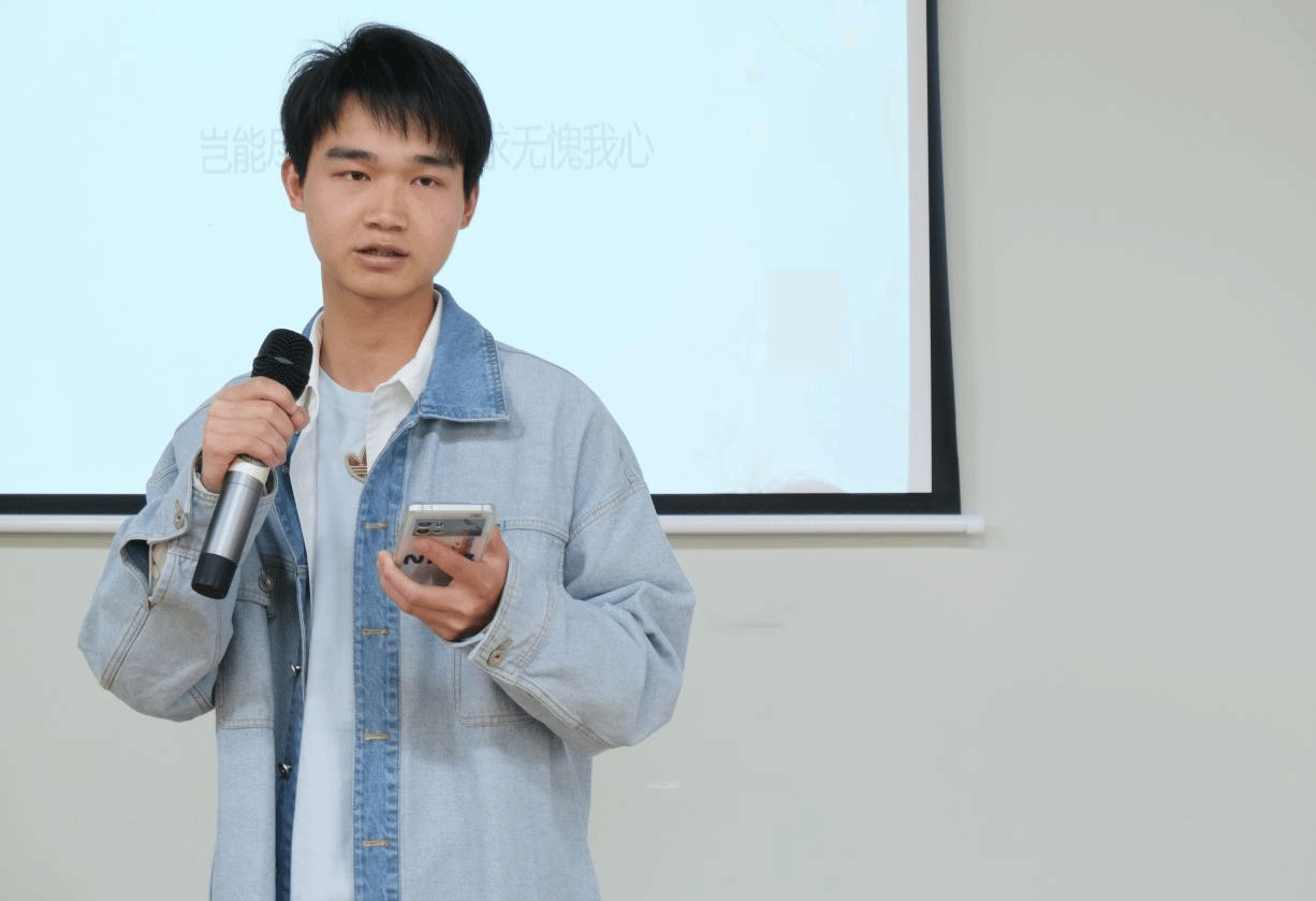 第四位选手是来自计科10班的廖治杰同学。“岂能尽如人意,但求无愧我心”是他的座右铭,古代君子有“穷则独善其身,达则兼济天下”的观点,人生在世,难免有许多不如意的事情,我们不能把过往时光拉住,所以更要珍惜当下,拒绝无效焦虑!