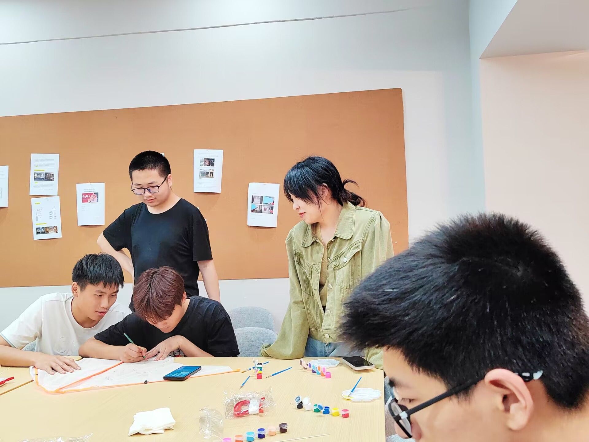 陈老师带来的风筝,留下着一片又一片的空白。五颜六色的画料作为工具,少年将奇妙无比的想象力赋于纸笔。鼓励我们做大胆创新的新青年,创造力永不枯竭,兴奋之情也不会停止。细细的微笑在每个人脸上,不易察觉。在画作上,体现着每一个人独特的思维方式,陈导师在欣赏也在逐渐走进别样地花样人生。我们执起画笔,落下浓墨重彩的一笔,画面也定格在那一瞬。